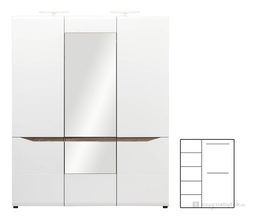 Šatní skříň Lynna LI 9 o výšce 201 cm a hloubce 56 cm v Dub Sonoma Truflový + Lesk bílý barvě je ideálním řešením pro Vaši ložnici. Tato elegantní třídílná šatní skříň disponuje dostatečným úložným prostorem pro Vaše oblečení a doplňky. Šatní skříň disponuje zrcadlem na prostředních dveřích, což Vám umožní rychlé a pohodlné oblékání. Díky svému designu je tato skříň ideálním doplňkem do jakéhokoli interiéru. S šatní skříní Lynna LI 9 získáte krásný a praktický kousek nábytku za vynikající cenu.