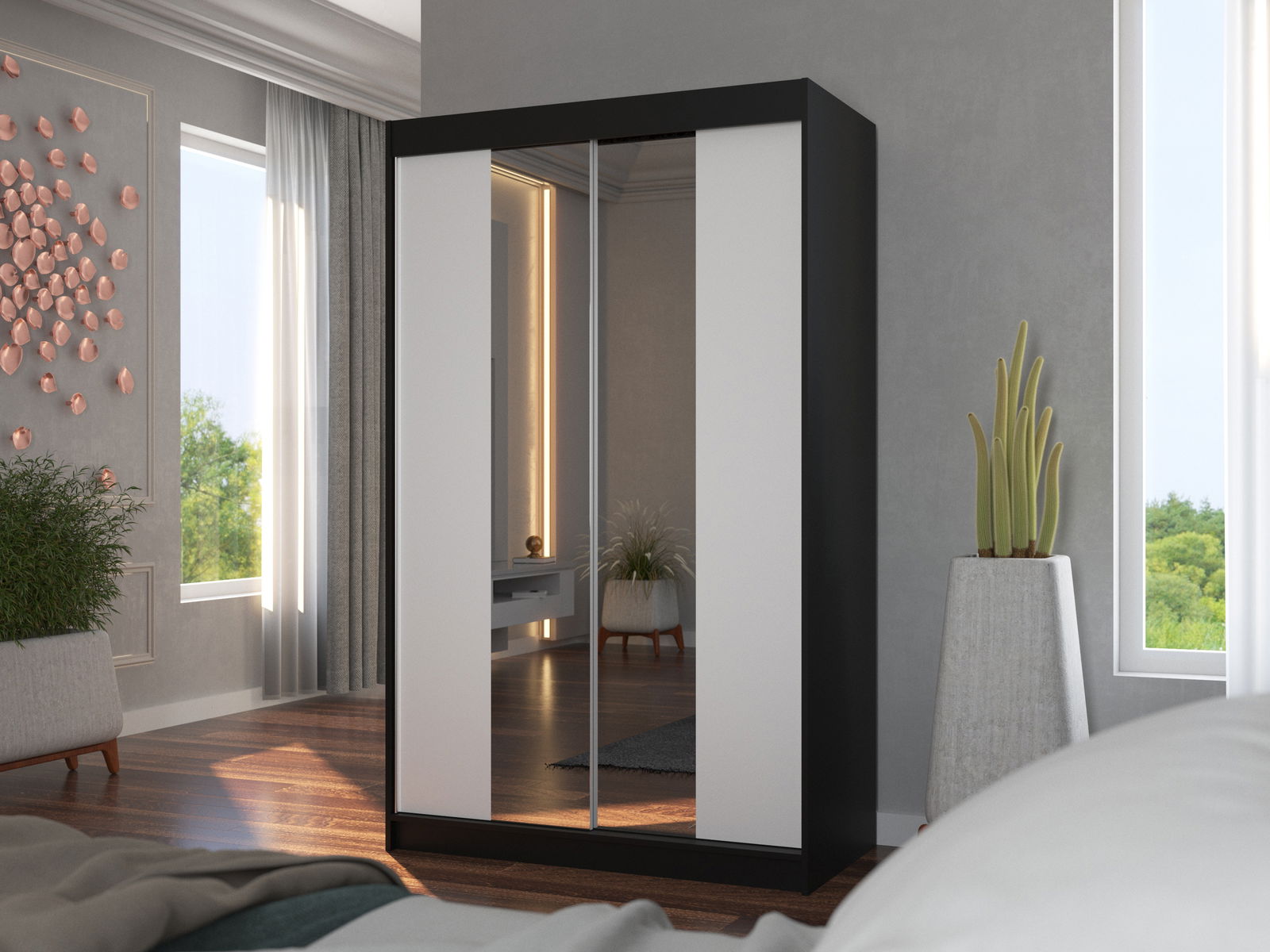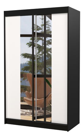 Šatní skříň Madio (černá + bílá) (se zrcadlem)