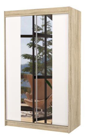 ZobrazitŠatní skříň Madio (dub sonoma + bílá) o výšce 200 cm, šířce 120 cm a hloubce 58 cm je ideálním řešením pro uskladnění vašich obleků a jiného oblečení. Skříň je vyrobena z kvalitního materiálu, který zaručuje dlouhou životnost. Díky svému elegantnímu designu v dub sonoma a bílé barvě se skvěle hodí do každého interiéru. Skříň je vybavena zrcadlem, které vám umožní okamžitě zkontrolovat, jak vypadáte ve zvoleném outfitu. Uvnitř skříně se nachází dostatek prostoru pro zavěšení obleků a poliček pro uskladnění ostatního oblečení či obuvi. Investujte do kvalitní a praktické šatní skříně Madio pro dokonalé uspořádání vaší garderoby.