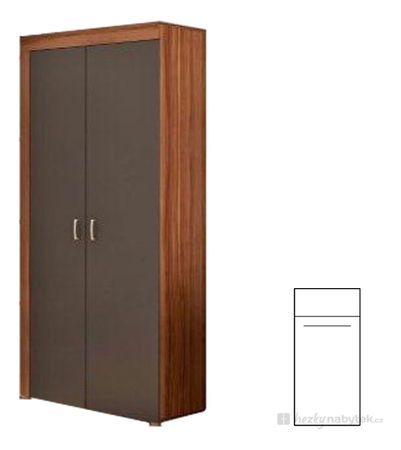 Elegantní dvoudveřová šatní skříň Mamba s věšákovou tyčí. Doporučujeme spolu s obývacím stěnou Mamba, kterou najdete u nás v kategorii Obývací stěny.
