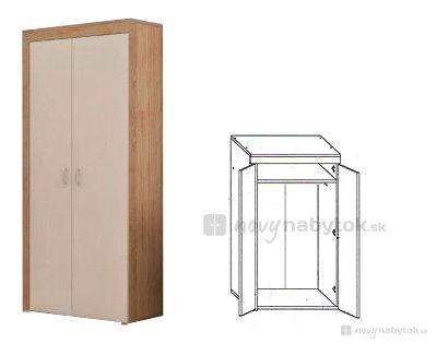 ZobrazitElegantní dvoudveřová šatní skříň Mamba s věšákovou tyčí. Doporučujeme spolu s obývacím stěnou Mamba, kterou najdete u nás v kategorii Obývací stěny.
