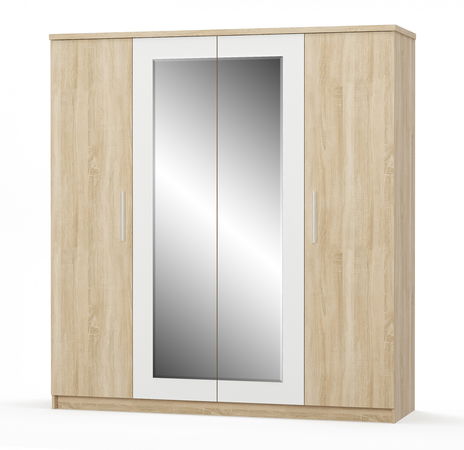 Šatní skříň Marlon (dub sonoma + bílá) je ideálním doplňkem pro každou ložnici. S výškou 214 cm a hloubkou 58 cm, tato skříň nabízí dostatek úložného prostoru pro vaši oblečení a doplňky. Je vyrobena z kvalitního dřeva dub sonoma, které spolu s bílou barvou vytváří moderní a elegantní vzhled. Skříň obsahuje čtyři police a jednu závěsnou tyč, která vám umožní uspořádat vaše věci podle vašich představ. Dveře jsou vybaveny praktickými držáky a kovovými panty, které zaručují jejich bezproblémové a snadné otevírání a zavírání. Šatní skříň Marlon (dub sonoma + bílá) je skvělou volbou pro každého zákazníka, který hledá spolehlivý a funkční kus nábytku pro svou ložnici.