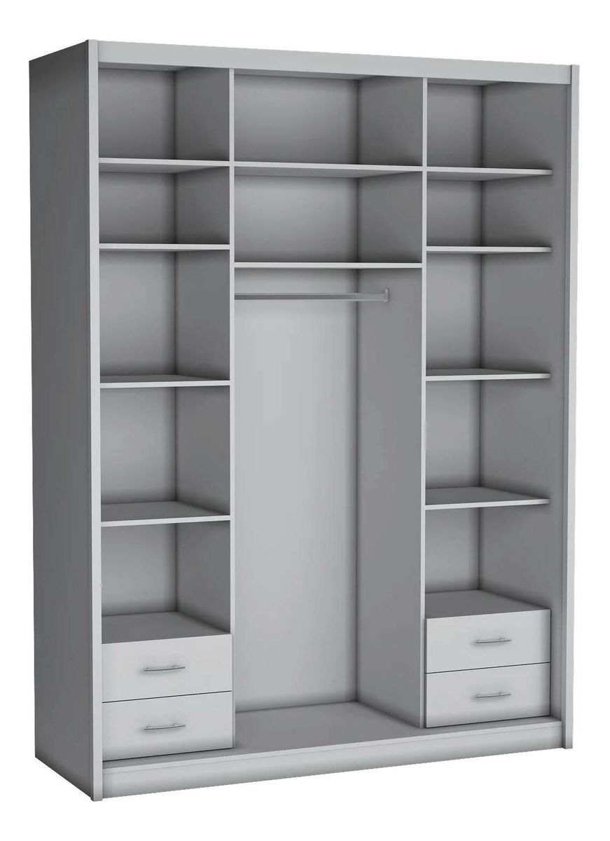ZobrazitVelká a prostorná šatní skříň s posuvnými dveřmi. Díky velkému počtu polic a šuplíků si můžeme lépe zorganizovat oblečení a další věci. Ve středu se nachází tyč a dvě širší police. Je vytvořena z nejkvalitnějších materiálů, je stabilní, jednoduchá a vyplní prázdný prostor. Přírodní odstíny zaručují, že se hodí do každého prostoru.