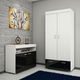 Moderní dvoudveřová šatní skříň Max v barvě bílá matná v kombinaci s černým leskem s jednou zásuvkou ve spodní části a věšákovou tyčí na zavěšení šatů. Elegantní ve spojení obývacího pokoje Max, kterou také najdete v naší nabídce obývacích stěn.
