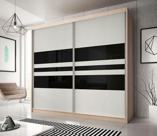 Šatní skříň Mebur 01 230 (dub sonoma + bílá + černé sklo)