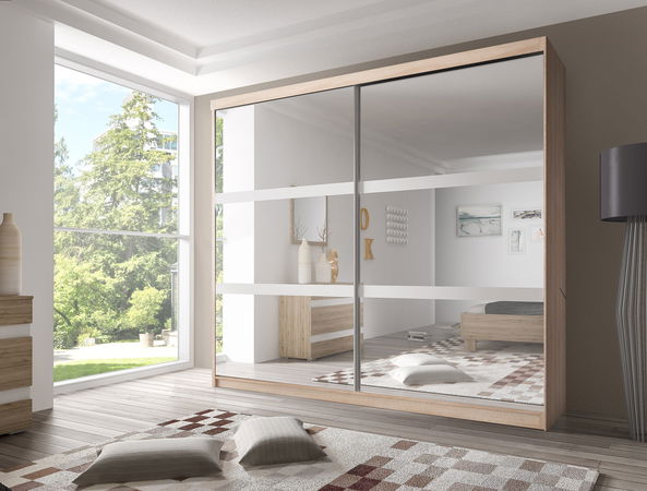 Šatní skříň Mebur 10 180 (dub sonoma + bílá + zrcadlo)