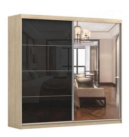 Šatní skříň Mebur 31 230 v dub sonoma a lesk černém provedení je ideálním řešením pro vaši ložnici. Skříň má výšku 218 cm a hloubku 61 cm. Vnější i vnitřní materiál jsou vyrobeny z kvalitní dřevotřísky o tloušťce 16 mm, ABS hrany mají tloušťku 0,5 mm a úchyty jsou z hliníku. Skříň disponuje pětí policemi a věšákovou tyčí v levé části, a jednou poličkou nad ní. V pravé části se nachází věšáková tyč a police na odkládání. Šatní skříň Mebur 31 230 je praktická a pěkná volba pro vaši ložnici.