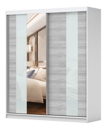 Šatní skříň Mebur 32 180 (bílá + kathult + bílé sklo + zrcadlo)