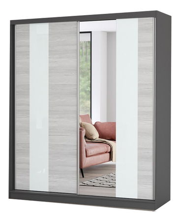 Šatní skříň Mebur 32 180 (grafit + kathult + bílé sklo + zrcadlo)
