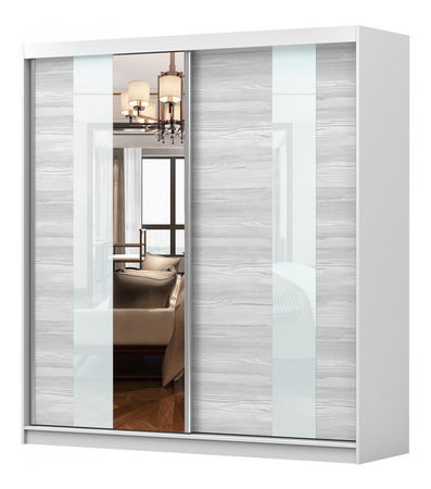 Šatní skříň Mebur 32 200 (bílá + kathult + bílé sklo + zrcadlo)