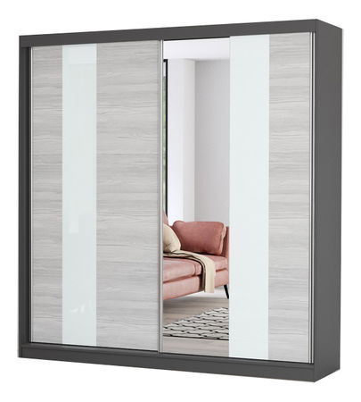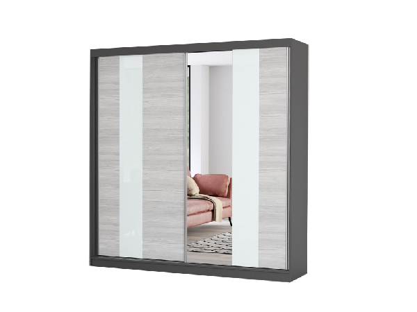 Šatní skříň Mebur 32 200 (grafit + kathult + bílé sklo + zrcadlo)