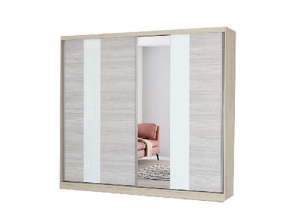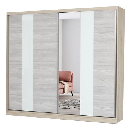 Šatní skříň Mebur 32 230 (dub sonoma + kathult + bílé sklo + zrcadlo)