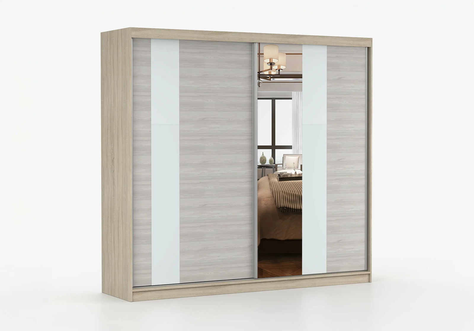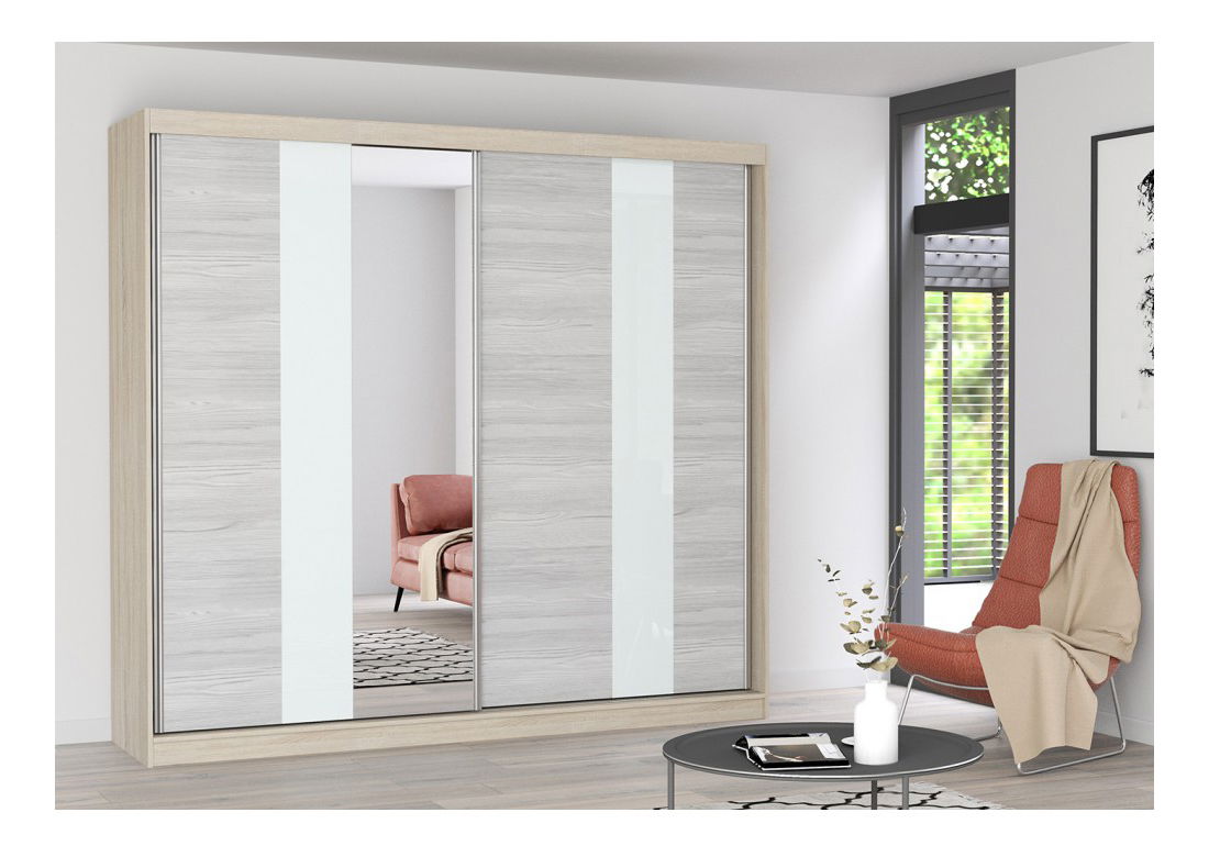 - Šatní skříň Mebur 32 230 (dub sonoma + kathult + bílé sklo + zrcadlo)