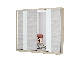 V levé části skříně se nachází pět polic a věšáková tyč a jedna police nad ní. V pravé části skříně se také nachází věšáková tyč a police na odkládání.