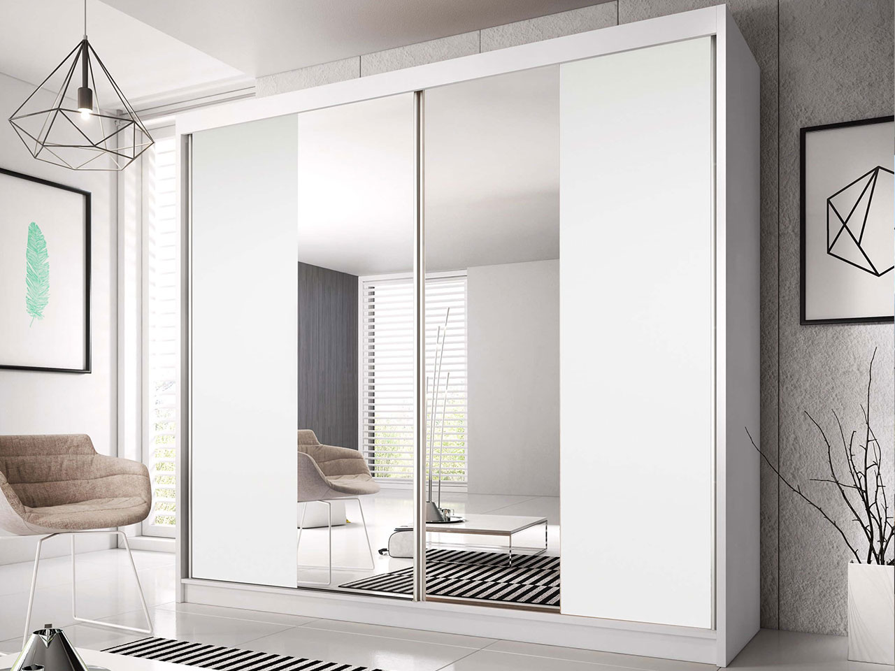Šatní skříň Mebur 38 230 (bílá + bílá + zrcadlo)