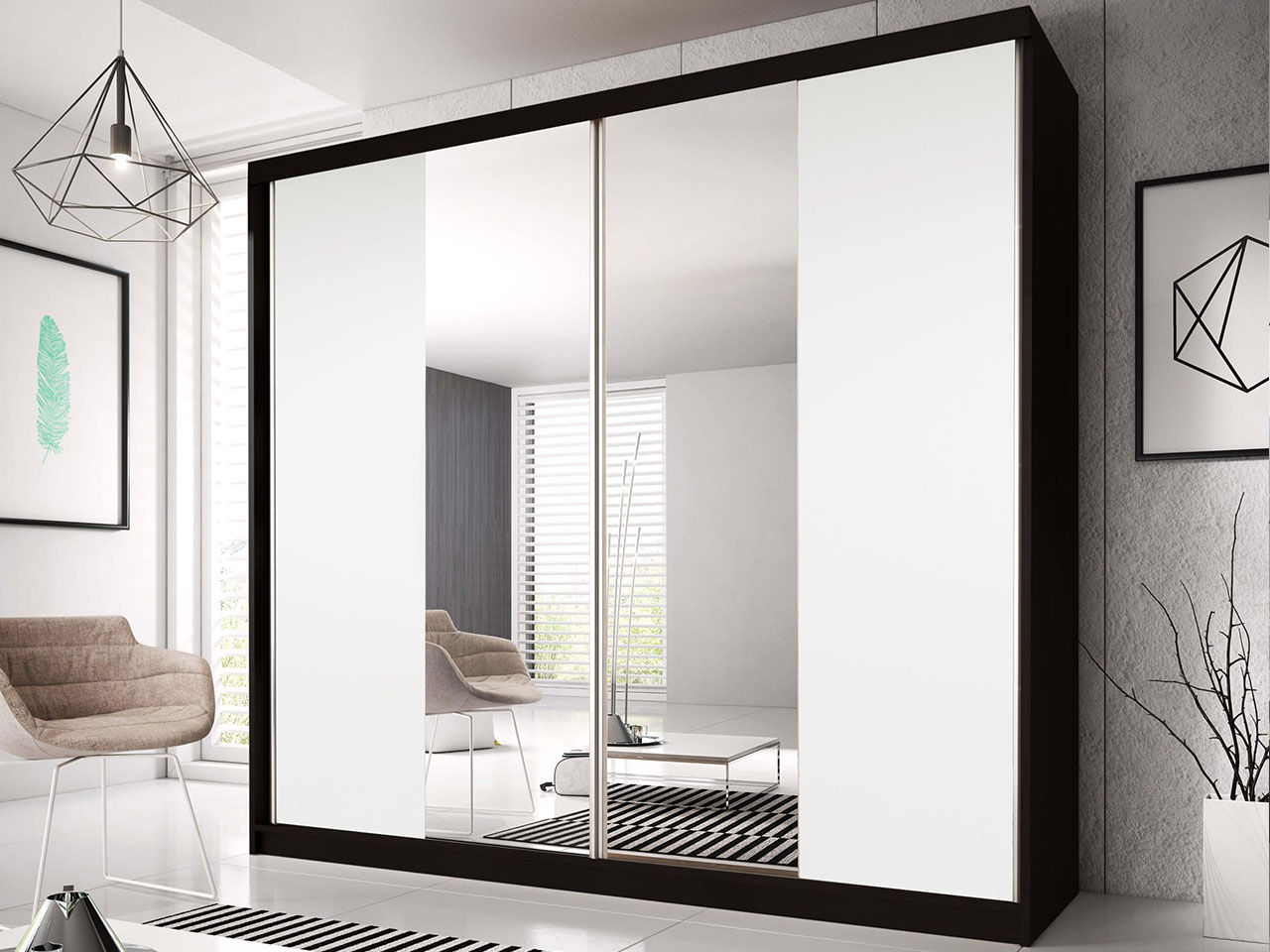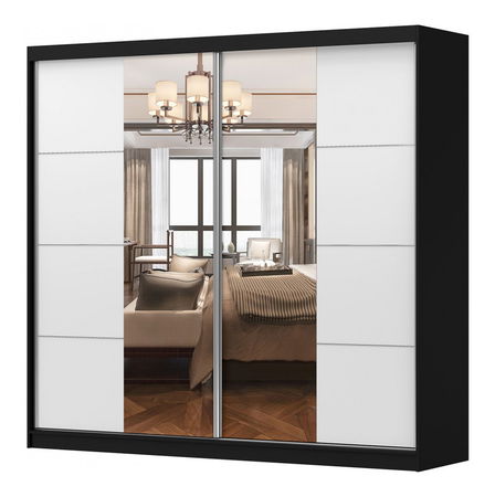 Šatní skříň Mebur 38 230 (černá + bílá + zrcadlo)
