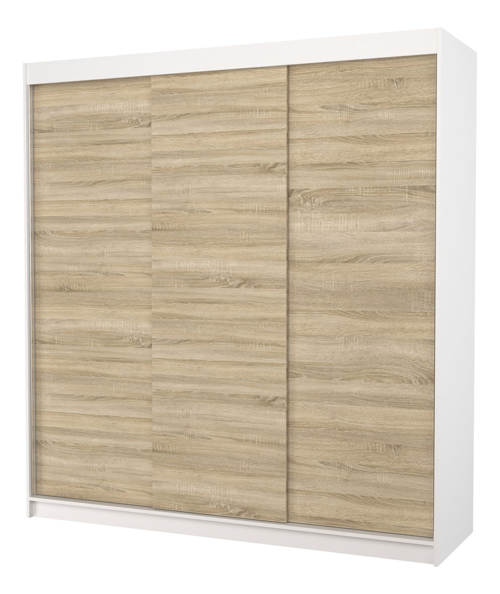 ZobrazitŠatní skříň Meggie (bílá + dub sonoma) o výšce 215 cm, šířce 200 cm a hloubce 58 cm je ideální volbou pro každého, kdo hledá kvalitní a funkční kus nábytku do ložnice, šatny či předsíně. Tato skříň disponuje dostatečným úložným prostorem, který vám pomůže udržet váš pokoj čistý a uklizený. Skříň je vyrobena z kvalitních materiálů a je dokonale sladěna v bílém a dubu sonoma. Její moderní design a vysoká kvalita vyrobení zaručují, že se bude skvěle hodit do jakéhokoli interiéru a poslouží vám po mnoho let.