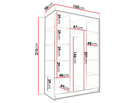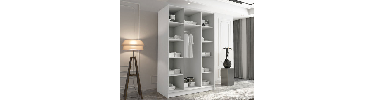 Velká šatní skříň Merpata III se zrcadlem je ideálním řešením do ložnice, šatny i předsíně. Zaujme svým moderním designem. Zvláštní pozornost přitahuje obrovské zrcadlo na čelech dveří. Celé je to obohaceno o elegantní, prodloužené rukojeti. Tento design místnost prosvětlí a opticky zvětší. Třídveřová šatní skříň má prostorný interiér. Můžete bez problémů umístit celou vaši sbírku oblečení. Místo bude také na oblečení vaší polovičky. V šatníku se kromě mnoha polic nachází také tyč, která je jako stvořená pro šaty, košile a obleky.
