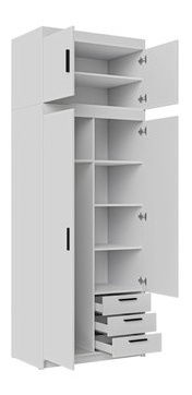 ZobrazitŠatní skříň Melen 2D3S + nástavec je ideální volbou pro ty, kteří hledají pohodlí a styl. Každý úložný prostor je mimořádně důležitý. Dvoudveřová skříň Melen 2D3S s nástavcem vám poskytne dostatek praktického prostoru na oblečení, bytové doplňky a drobnosti. Skládá se z mnoha praktických polic různých velikostí, praktických šuplíků, které můžete použít na spodní prádlo, a kolejnice na košile, bundy a saka. Univerzální design skříně se perfektně hodí do každého interiéru. Tlumené barvy doplní moderní aranžmá i klasický dekor. Celek doplňují černé nebo chromové úchyty, které umožňují rychlý přístup k nejpotřebnějším věcem. Rozměry: šířka: 90 cm výška: 246 cm hloubka: 53 cm Provedení: 15 mm silná laminovaná deska okraj: melamin zadní část nábytku je vyrobena z HDF desky plastové rukojeti: bílá, dub lefkas - černá barva dub sonoma - barva matný chrom nohy pánský černý plastový na šaty a police Záruka: 24 měsíců