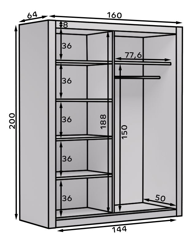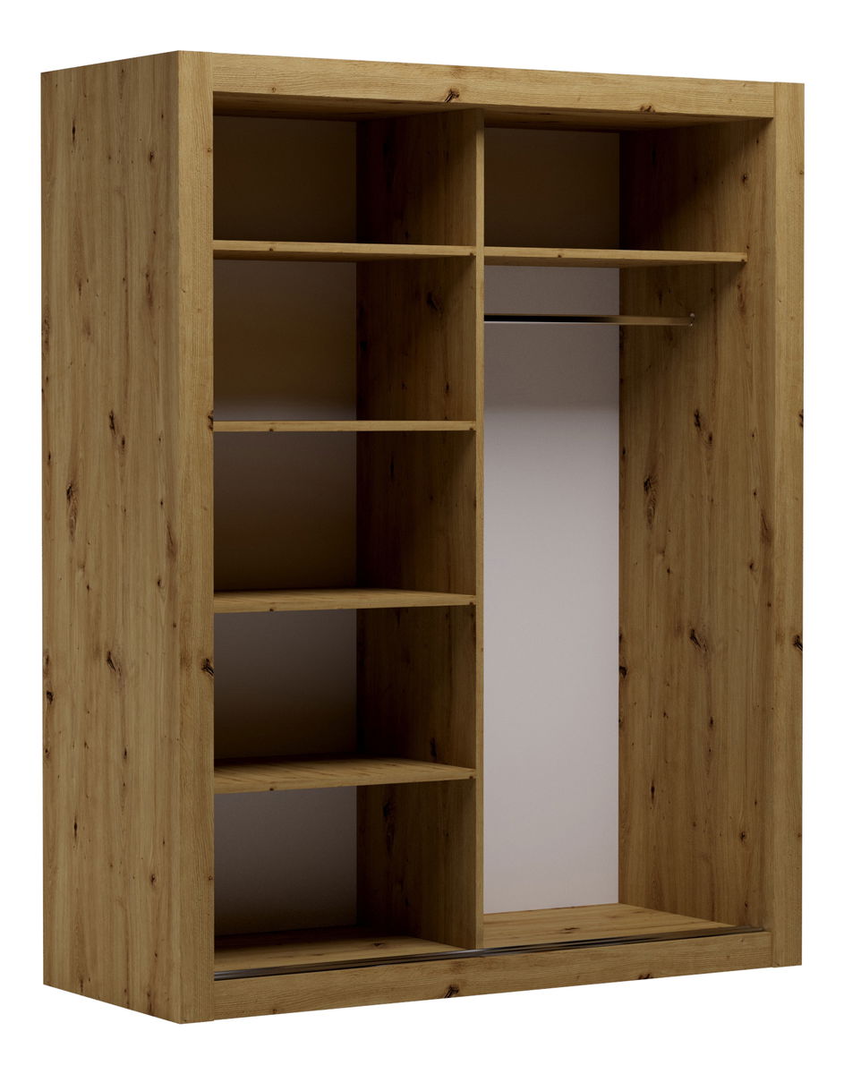 ZobrazitŠatní skříň Mochi (dub artisan) s vnitřním zrcadlem je vysoká 200 cm, široká 160 cm a hluboká 64 cm. Tato skříň je vyrobena z kvalitního dubového dřeva, které dodává pokoji přírodní a elegantní vzhled. Skříň Mochi nabízí dostatek úložného prostoru pro vaše šaty, boty a doplňky, díky různým policem a věšákovým tyčím. Díky vnitřnímu zrcadlu si můžete zkontrolovat svůj outfit ještě předtím, než vyjedete z domu. Skříň Mochi je skvělou volbou pro ty, kteří hledají kvalitu, eleganci a praktičnost v jednom produktu.