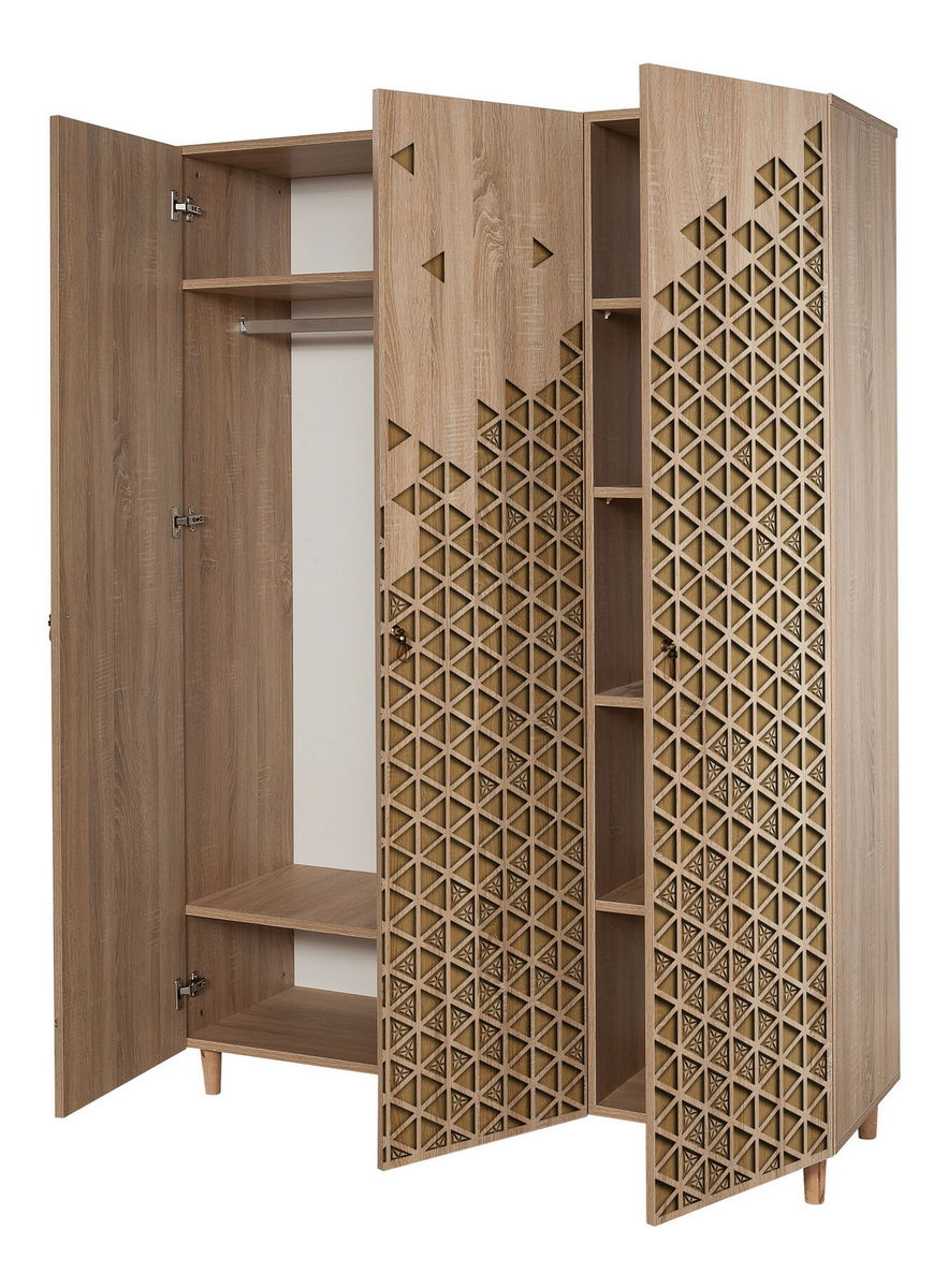 tloušťka: 18 mm, habrové nohy, kovové rukojeti, uv nátěr, šířka: 135 cm, výška: 192 cm, hloubka: 52 cm, šířka boční police: 45 cm, výška police: 35 cm, výška nohy: 10 cm