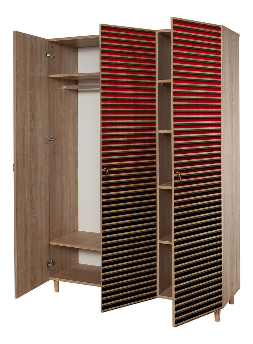 tloušťka: 18 mm, habrové nohy, kovové rukojeti, uv nátěr, šířka: 135 cm, výška: 192 cm, hloubka: 52 cm, šířka boční police: 45 cm, výška police: 35 cm, výška nohy: 10 cm
