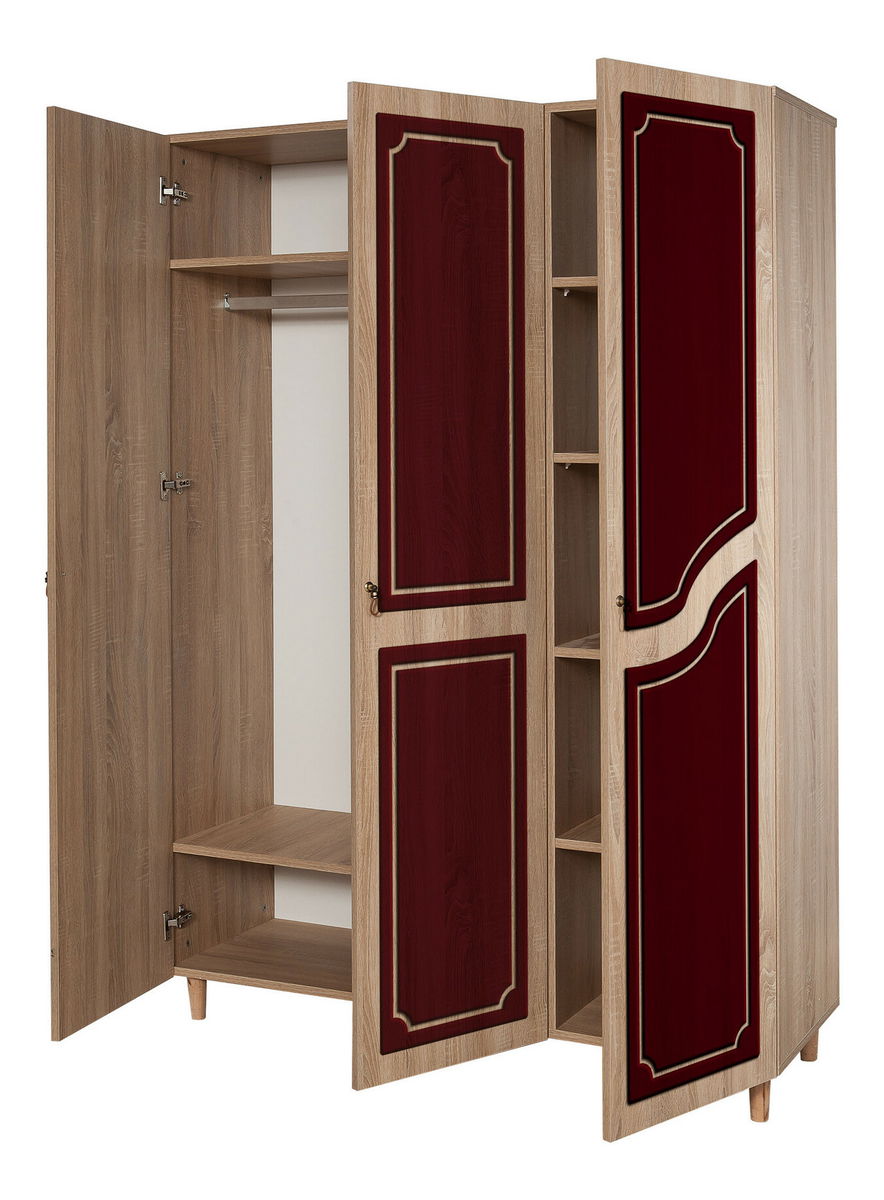 tloušťka: 18 mm, habrové nohy, kovové rukojeti, uv nátěr, šířka: 135 cm, výška: 192 cm, hloubka: 52 cm, šířka boční police: 45 cm, výška police: 35 cm, výška nohy: 10 cm