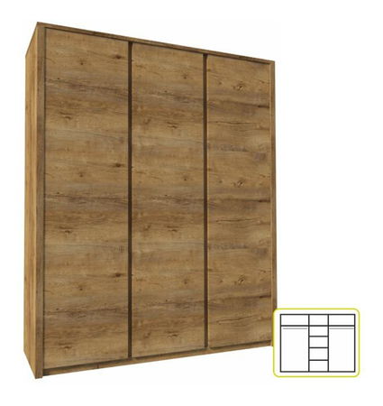 Třídveřová věšáková skříň Montana s policemi zaujme klasickým a čistým stylem. Poskytne však dostatek úložného prostoru a využijete ji v obývacích pokojích, ložnicích nebo pracovnách. Je v přitažlivém barevném provedení dub lefkas tmavý.