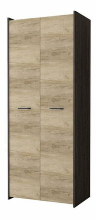 Šatní skříň poskytuje účelné skladování s moderním vzhledem. Vnější i vnitřní materiál skříně je z 16 mm silné dřevotřísky, což zaručuje její pevnost. ABS hrany o tloušťce 0,5 mm přidávají na odolnosti a estetice. Skříň má PVC úchyty, plastové nožičky, dvě dveře, jednu tyč na zavěšení oděvů a jednu poličku, čímž je praktickým a efektivním řešením pro uspořádání oblečení. Zrcadlo není součástí skříně, což umožňuje větší flexibilitu při umístění v pokoji.