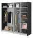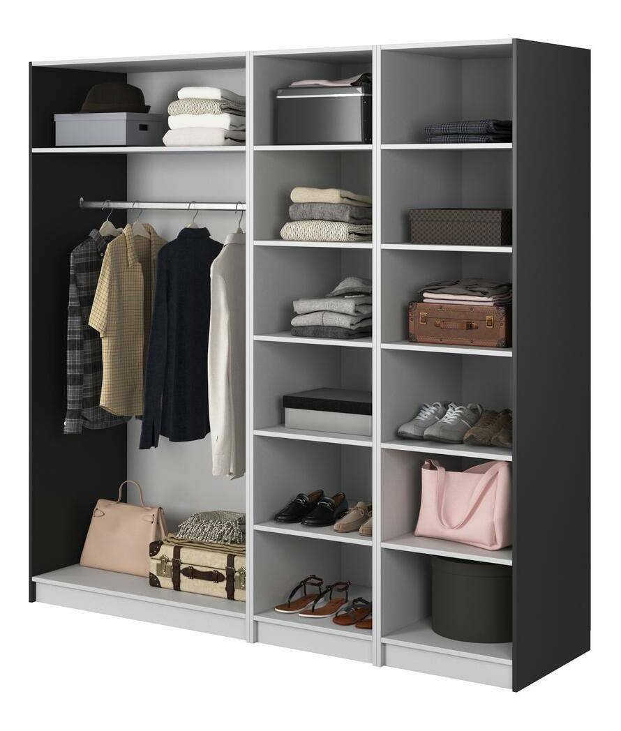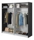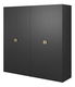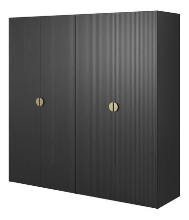 ZobrazitSníte o elegantním uložení oblečení? Hledáte praktický a elegantní šatník? Představujeme šatní skříň - spojení stylu a praktičnosti pro váš prostor Čtyřdveřová skříň je elegantním a stylovým řešením, které bude skvělou alternativou šatní skříně. Jeho minimalistický design se perfektně hodí do moderního i klasického interiéru. Celé tělo je vyrobeno z kvalitní laminované dřevotřísky, která zaručuje odolnost a snadné čištění. Čela šatníku mají jemné lamely, které mu dodávají jemnou texturu a zajímavý vizuální efekt. Přední strana má zlatou, půlkruhovou rukojeť z broušené oceli, která dodává rafinovaný vzhled a kontrastuje s matným tělem. Interiér šatníku byl navržen tak, aby se do něj vešly různé oděvy. Kolejnice vám umožní zavěsit oblečení, abyste jej udrželi v dobrém stavu, zatímco horní police vám umožní uložit méně často používané oblečení nebo doplňky. Sloupec s policemi umožňuje efektivně třídit oblečení a doplňky. Klasická barva dodává místnosti eleganci a styl a tlumené barvy dokonale ladí s různými dekorativními styly. Šatní skříň je tedy nejen funkčním prvkem interiéru, ale i estetickým akcentem, který dokáže vnést do prostoru nádech modernosti a třídy. , čela z MDF desky potažená černou PVC fólií, úchytky zlaté barvy z broušené oceli, 96,5 cm dlouhá lišta umístěná ve výšce 147 cm od základny, rozměry police: šířka 46 ,5 /96,5 cm / výška 30 cm / hloubka 55 cm, možnost změny konfigurace uvnitř skříně ve stádiu montáže.