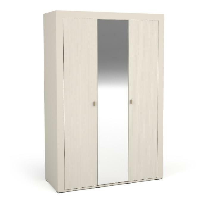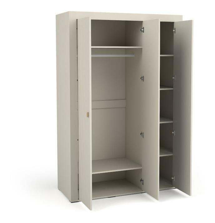 Šatní skříň Mossana MO1 (kašmír) o výšce 193,6 cm a hloubce 55,8 cm je klasickou volbou pro každý šatník nebo předsíň. Tato skříň je ideální pro zavěšení kabátů a jiných věcí. Skříň je dostupná v několika barevných provedeních. Korpus skříně, jakož i její přední část jsou vyrobeny z laminátu s povrchovou úpravou kašmírové barvy. Úchytky jsou ve tvaru obdélníku, zlaté barvy a připevněny pomocí šroubů. Skříň je vybavena zrcadlem a obsahuje jednu tyč na zavěšení šatstva. Tyč je umístěna v levé části skříně, přičemž tento prostor je ohraničen dvěma poličkami, jednou v dolní a jednou v horní části skříně. Pravá část skříně obsahuje 5 samostatných úzkých polic ideálních pro uskladnění skládaného šatstva nebo doplňků.