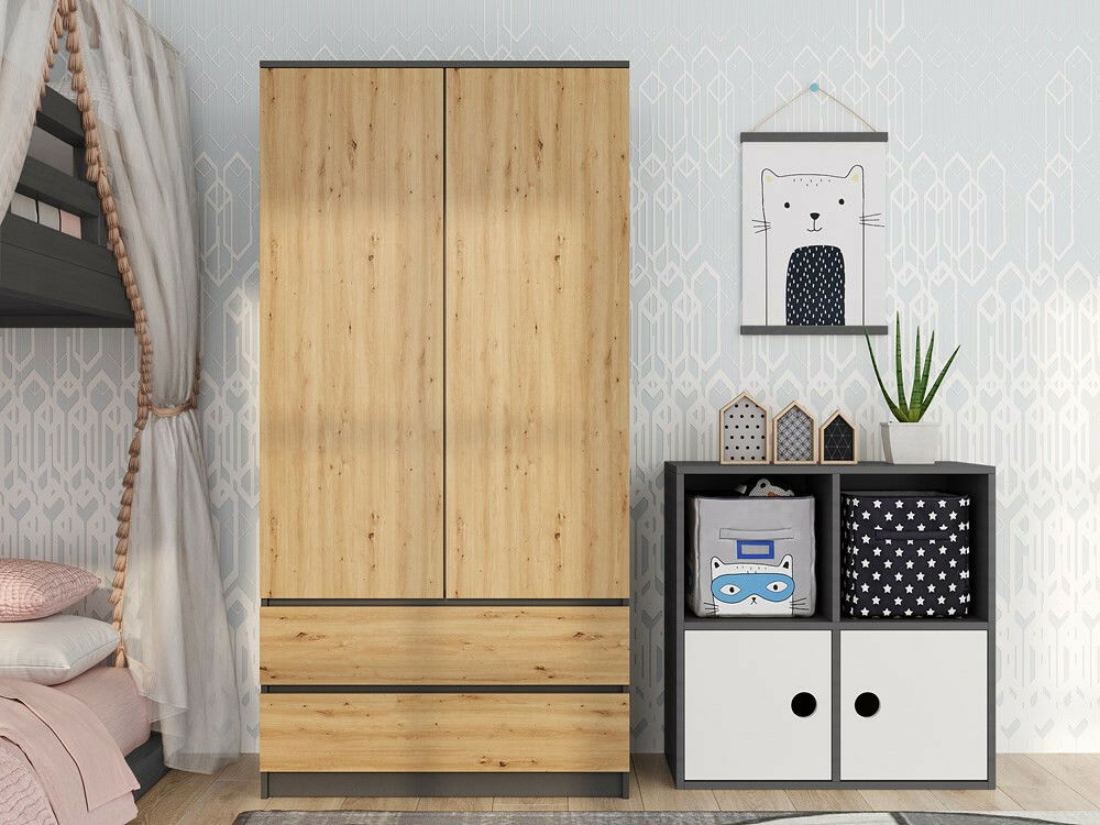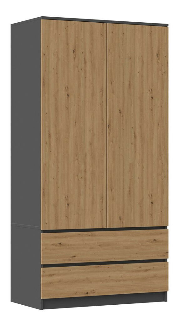 ZobrazitŠatní skříň Musecalo 1 v elegantní kombinaci antracit a dub artisan je ideálním řešením pro moderní interiéry, ať už v ložnici nebo v kanceláři. Tento praktický nábytek nabízí dostatek úložného prostoru pro oblečení a dokumenty, přičemž jeho robustní konstrukce z kvalitní laminované dřevotřísky zaručuje odolnost vůči poškrábání a vlhkosti. Systém TIP-ON umožňuje pohodlné otevírání dveří bez úchytek, což zvyšuje estetiku a funkčnost. Musecalo 1 je skvělou volbou pro ty, kteří ocení spojení moderního designu a praktičnosti.