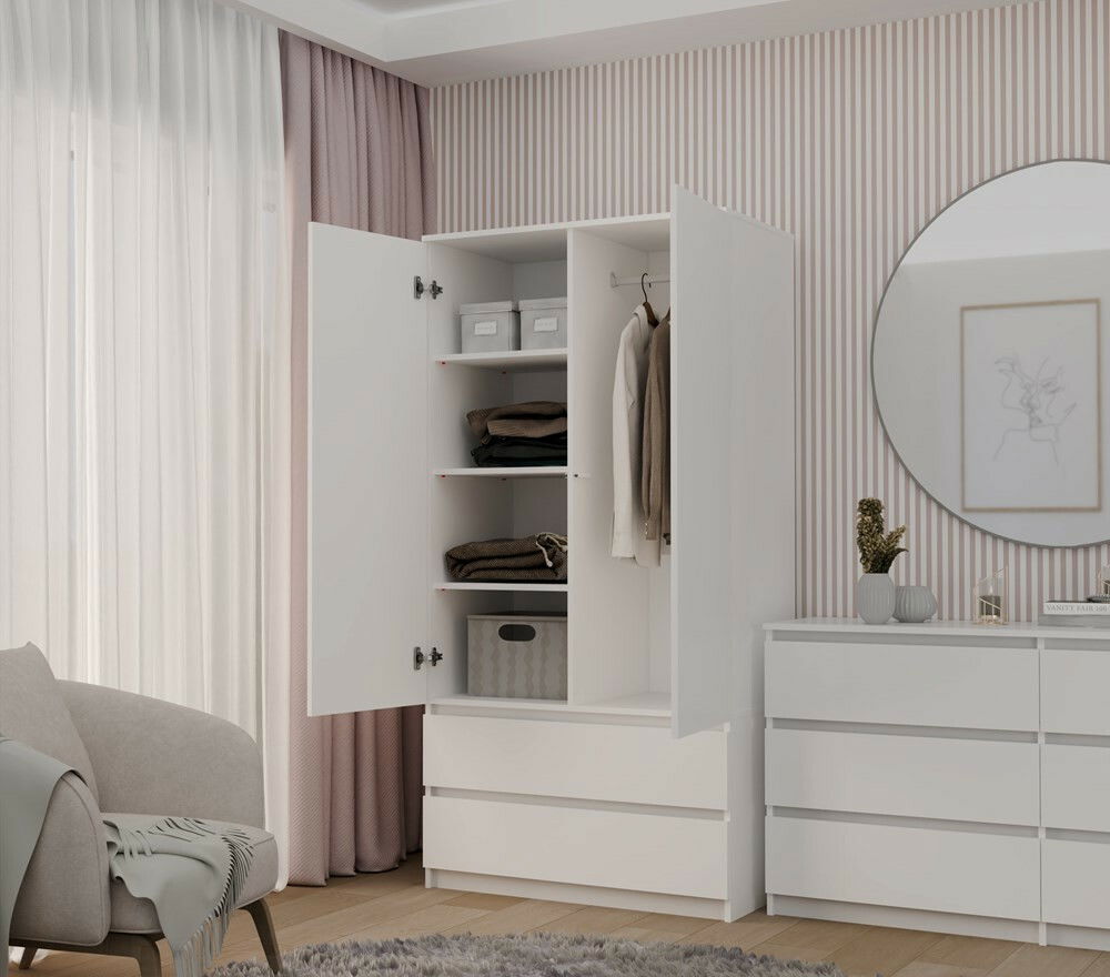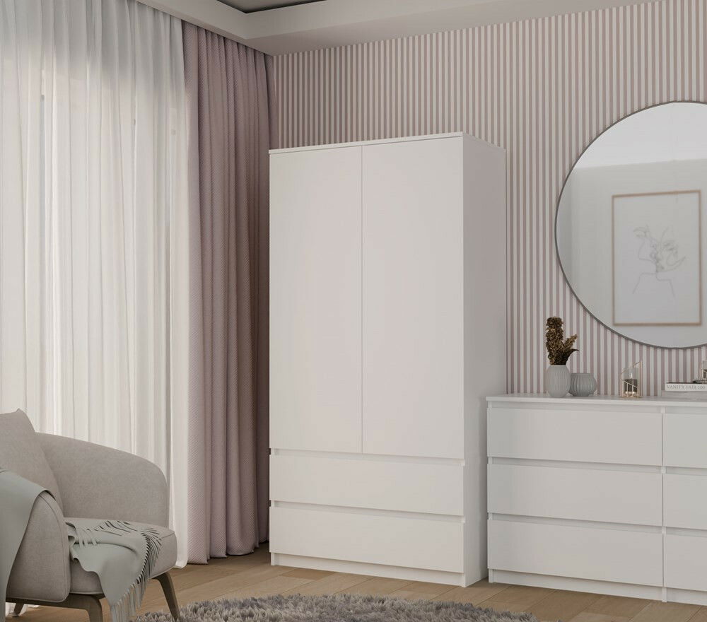 ZobrazitŠatní skříň Musecalo 1 v elegantní bílé barvě je ideálním řešením pro moderní interiéry, ať už v ložnici nebo v kanceláři. Tento praktický nábytek nabízí dostatek úložného prostoru pro oblečení a dokumenty, přičemž jeho robustní konstrukce z kvalitní laminované dřevotřísky zajišťuje odolnost vůči poškrábání a vlhkosti. Inovativní systém TIP-ON umožňuje snadné otevírání dveří bez úchytek, což zvyšuje estetiku a pohodlí při používání. Skříň Musecalo 1 je skvělou volbou pro ty, kteří ocení funkčnost a moderní design.