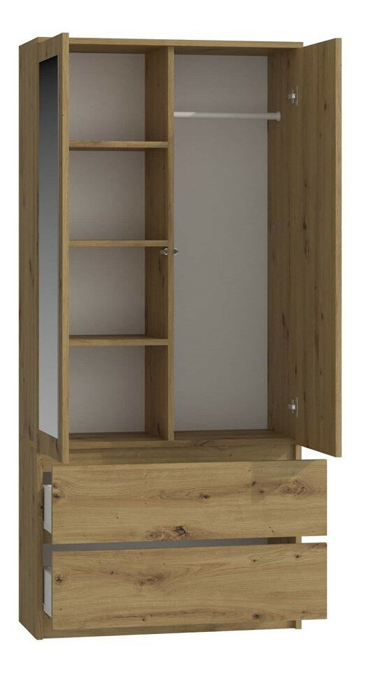 ZobrazitŠatní skříň Musecalo 1 v elegantní barvě dub artisan je ideálním řešením pro každou domácnost, kde je kladen důraz na funkčnost a moderní design. S minimalistickou konstrukcí a bezúchytkovým systémem TIP-ON, který umožňuje snadné otevírání dveří, nabízí dostatek prostoru pro oblečení, včetně čtyř polic a dvou zásuvek. Její robustní laminovaná konstrukce zaručuje dlouhou životnost a estetické provedení bez viditelných otvorů na bocích zvyšuje její vizuální přitažlivost. Musecalo 1 je praktickým a stylovým doplňkem do každé místnosti.