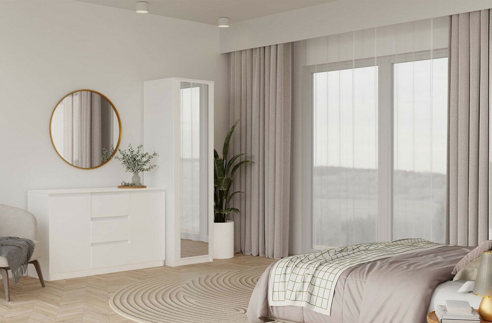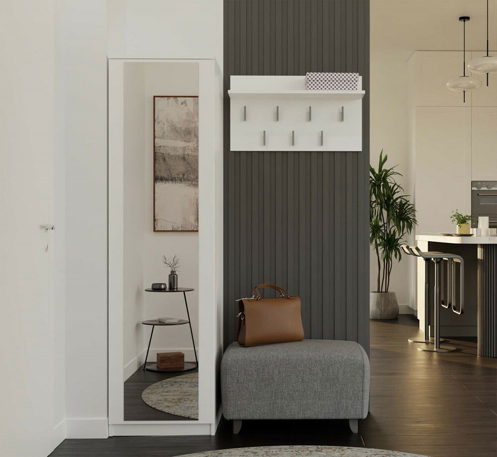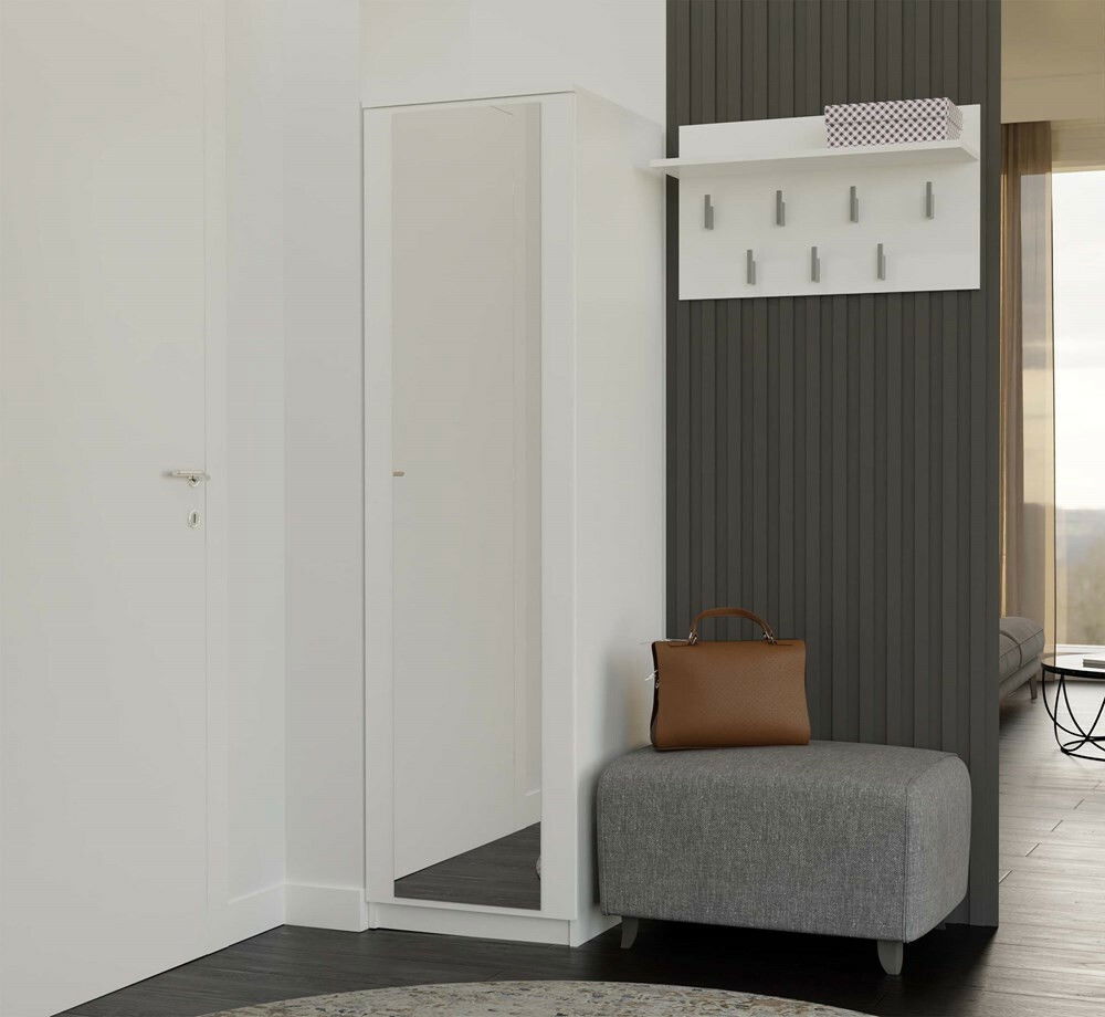 Šatní skříň Musecalo 2 v elegantní bílé matné barvě je ideálním řešením pro malé prostory, jako jsou ložnice, předsíně či kanceláře. Její moderní design s velkým zrcadlem na přední straně opticky zvětšuje prostor a dodává mu vzdušnost. Vnitřní uspořádání je přizpůsobitelné, přičemž obsahuje čtyři poličky a drážku pro oblečení, což zaručuje maximální funkčnost. Systém TIP-ON umožňuje snadné otevírání dveří bez úchytek, čímž se zvyšuje estetika a komfort používání. Musecalo 2 je skvělou volbou pro každého, kdo hledá praktický a stylový nábytek.