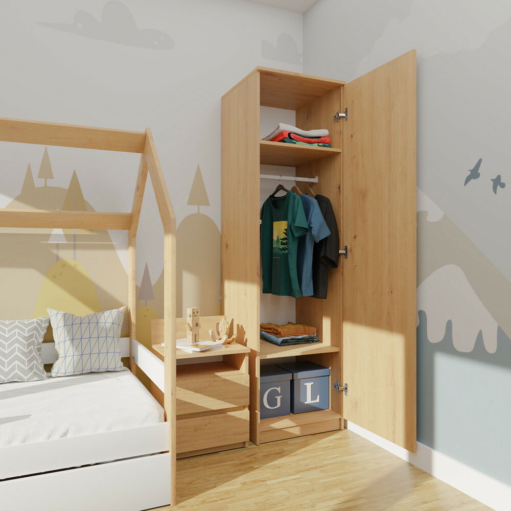 ZobrazitŠatní skříň Musecalo 2 v elegantní barvě dub artisan je ideálním řešením pro ty, kteří hledají kombinaci moderního designu a praktičnosti. S minimalistickou konstrukcí a systémem TIP-ON, který umožňuje snadné otevírání dveří jedním dotykem, nabízí dostatek úložného prostoru s možností přizpůsobení vnitra podle vašich potřeb. Vyrobeno z kvalitní laminované dřevotřísky, skříň je odolná vůči poškrábání a vlhkosti, přičemž její elegantní linie a bezúchytkové dveře zvyšují estetiku každého interiéru. Tento kus nábytku se stane praktickým a stylovým doplňkem ve vaší domácnosti.