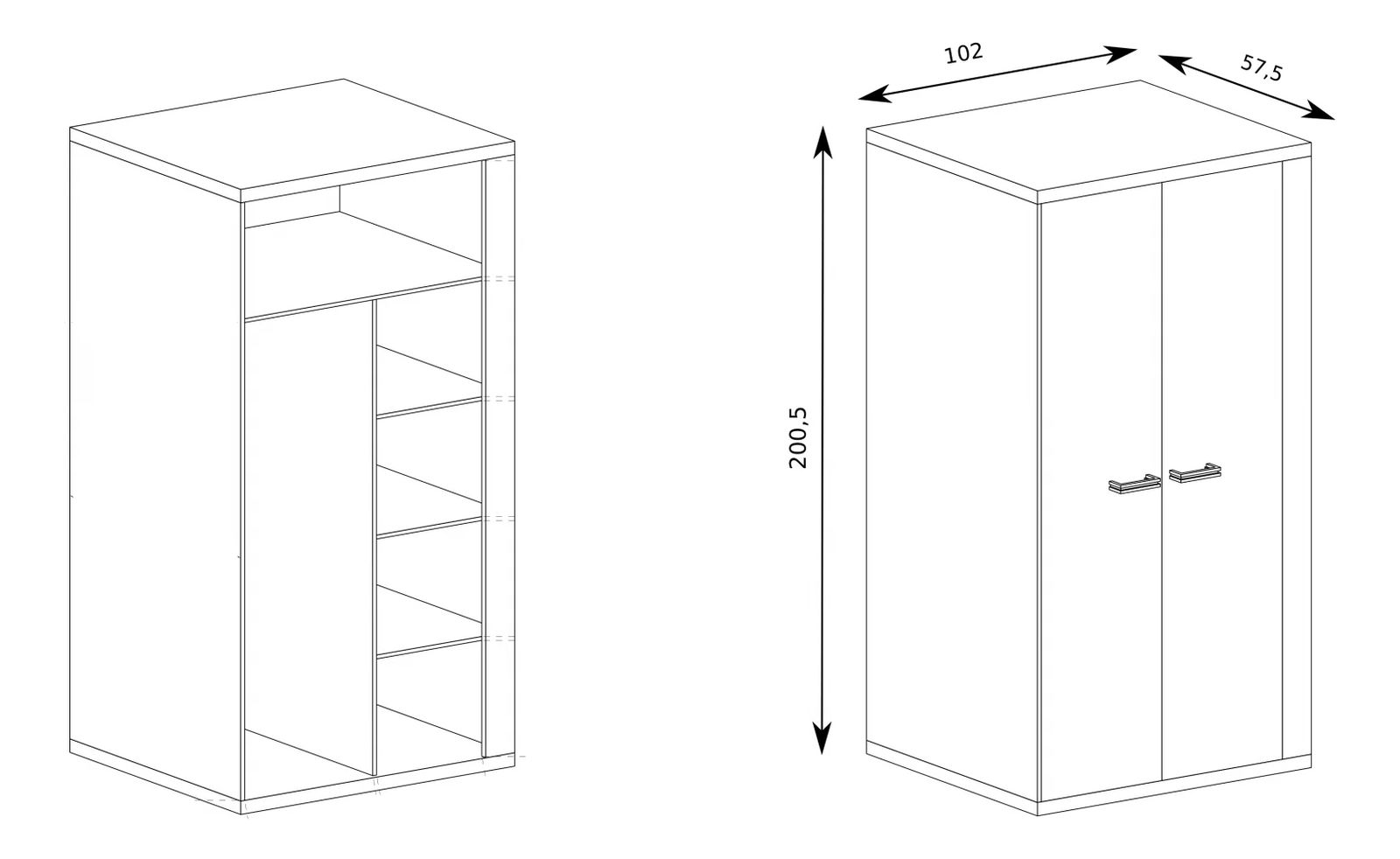 Dvoudveřová šatní skříň z kolekce Nature. Prostorný kus nábytku, který se stane skvělým místem pro vaše oblečení a jiné. V šatní skříni jsou čtyři police, což vám dává skvělé možnosti uspořádat si věci a výrazně usnadňuje každodenní organizaci, díky čemuž je skladování pohodlnější a jednodušší. Je vyrobena z laminované desky v teplém odstínu, která místnosti dodává příjemnou atmosféru a dokonale se do místnosti hodí. Kovové rukojeti jej dělají velmi elegantním. Panty s tichým zavíráním zdůrazňují jemnost nábytku. Skříň je dodávána bez vnitřních polic.