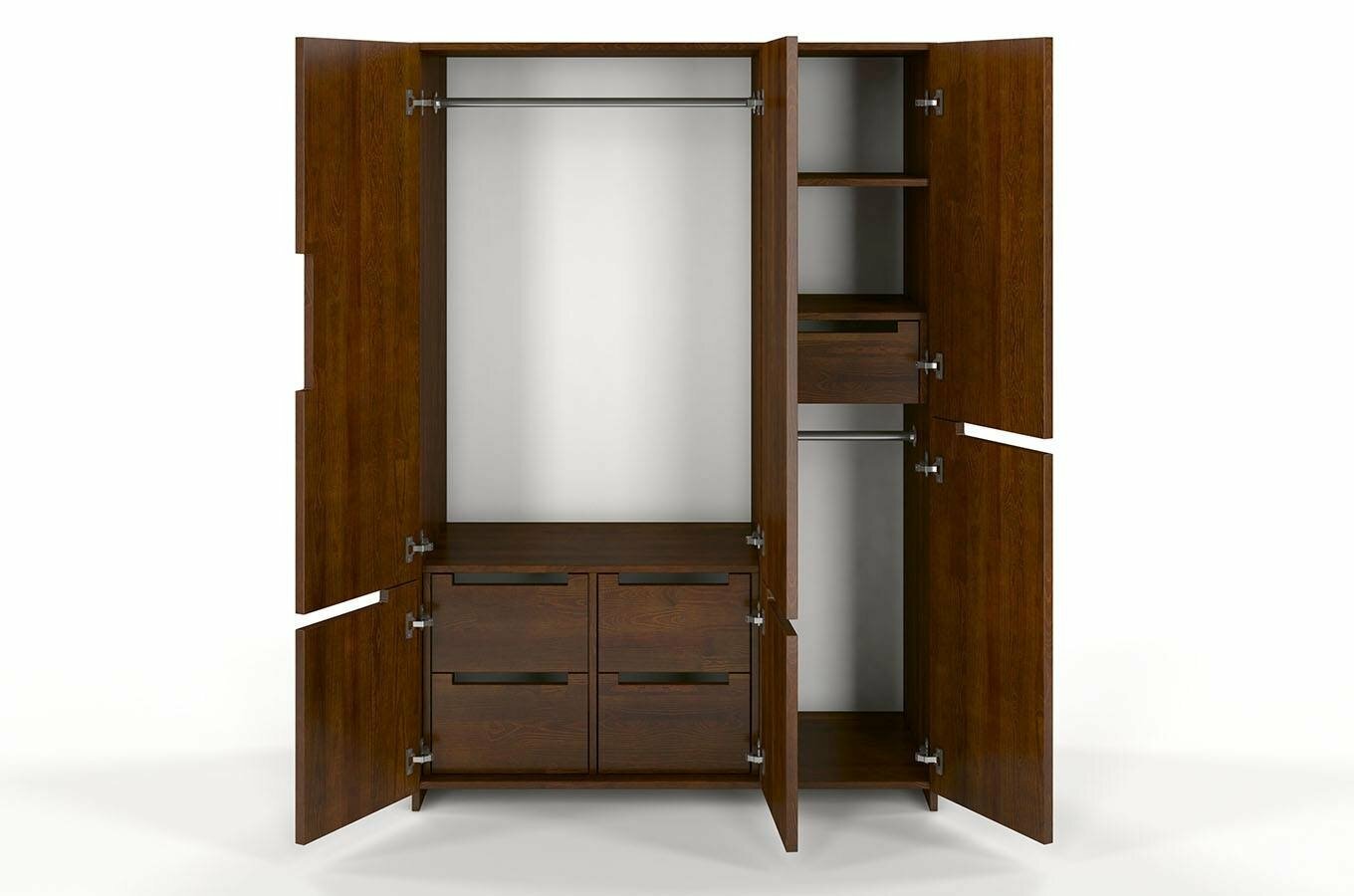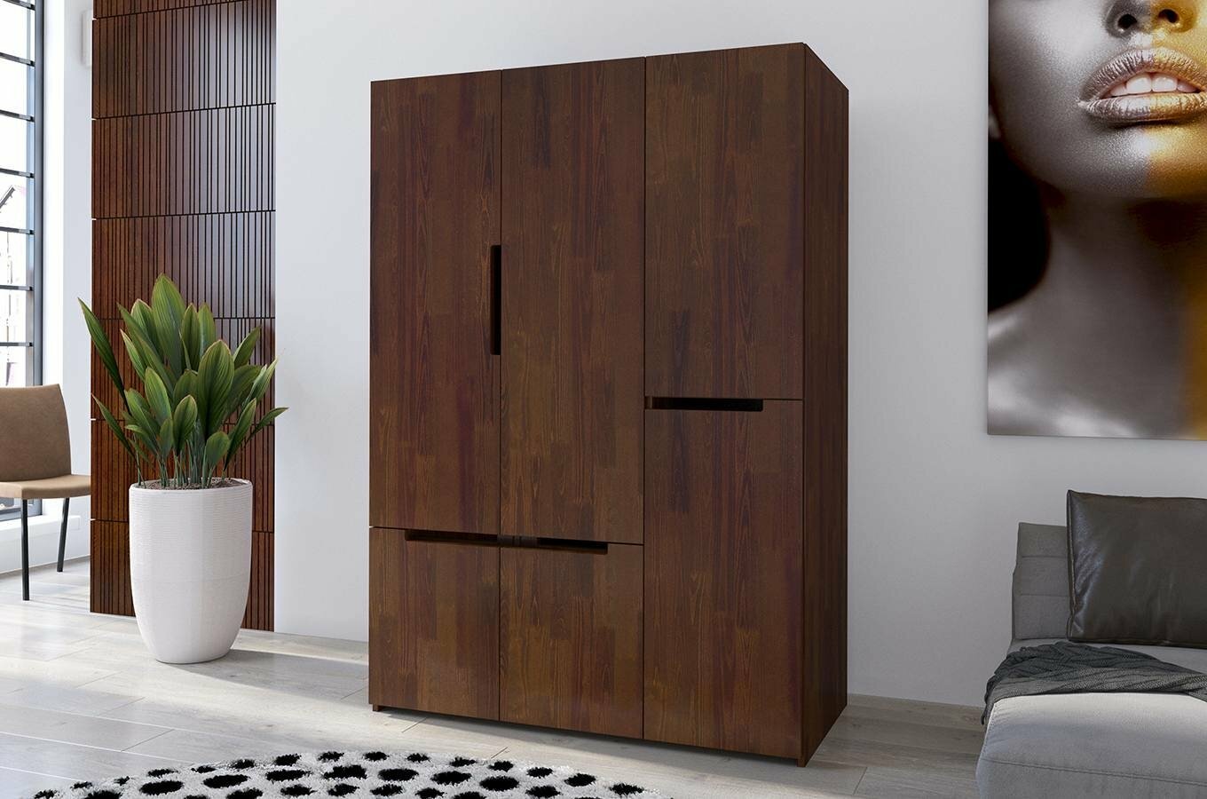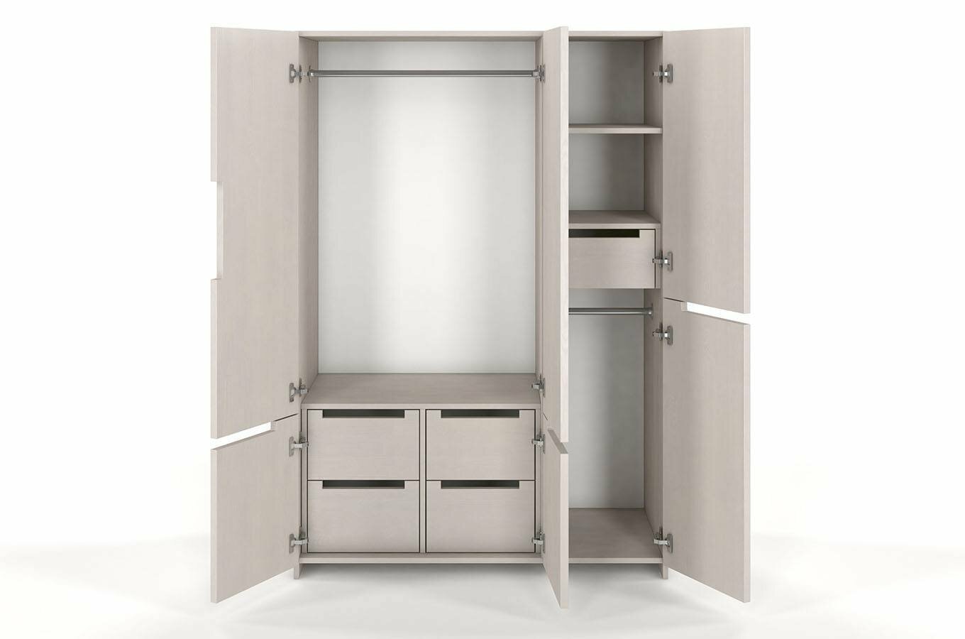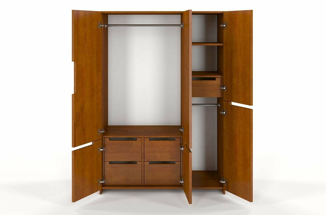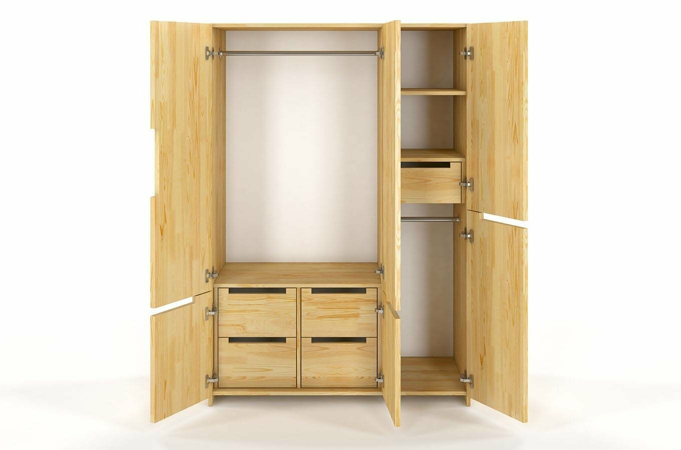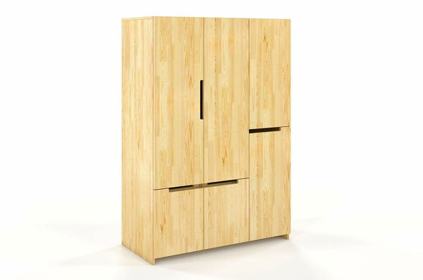 Šatní skříň Naturlig Larsos 3D5S (borovice) o výšce 180 cm a hloubce 60 cm vám nabízí dostatek prostoru pro uložení vašich věcí. S moderním a minimalistickým designem se hodí do každé stylové domácnosti. Vnitřní dělení skříně vás jistě okouzlí. Vlevo se nachází šatní tyč pro kabáty a delší oblečení, a ve spodní části jsou 4 zásuvky ideální pro prádlo nebo doplňky. Vpravo se nacházejí poličky, zásuvka a menší šatní tyč. Celkově je vnitřek vybaven 2 šatními tyčemi, 2 policemi a 5 zásuvkami. Pětná a stabilní konstrukce z borovicového dřeva zajišťuje dlouhou životnost skříně a jednotlivé kusy jsou odolné i vůči deformaci způsobeným vlhkostí. Dřevo je ošetřeno vrstvami ochranného laku, který nábytek chrání před oděrem a škrábanci. Zásuvky mají automatický systém dovírání, takže se nebudou bouchat. Šířka skříně je 128 cm. U tohoto produktu se vyžaduje záloha ve výši 50% z ceny produktu s DPH předem. Použitý moderní vysoce kvalitní lak na bázi vody zvýrazňuje přirozenou strukturu dřeva a chrání před poškrábáním. Produkt natřený tímto lakem je více odolný vůči čistícím prostředkům a UV filtry v laku pomáhají chránit před přirozeným stárnutím.