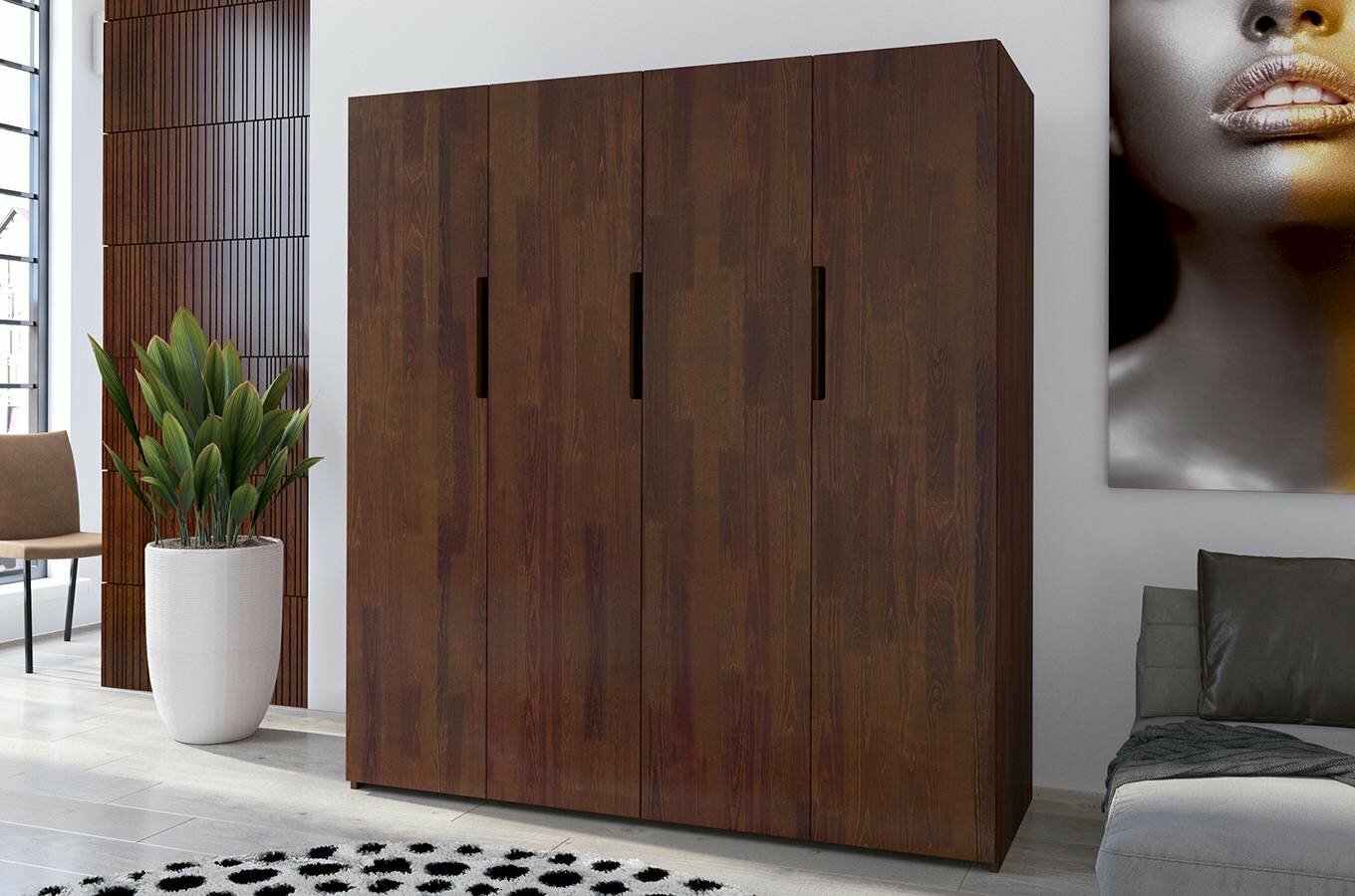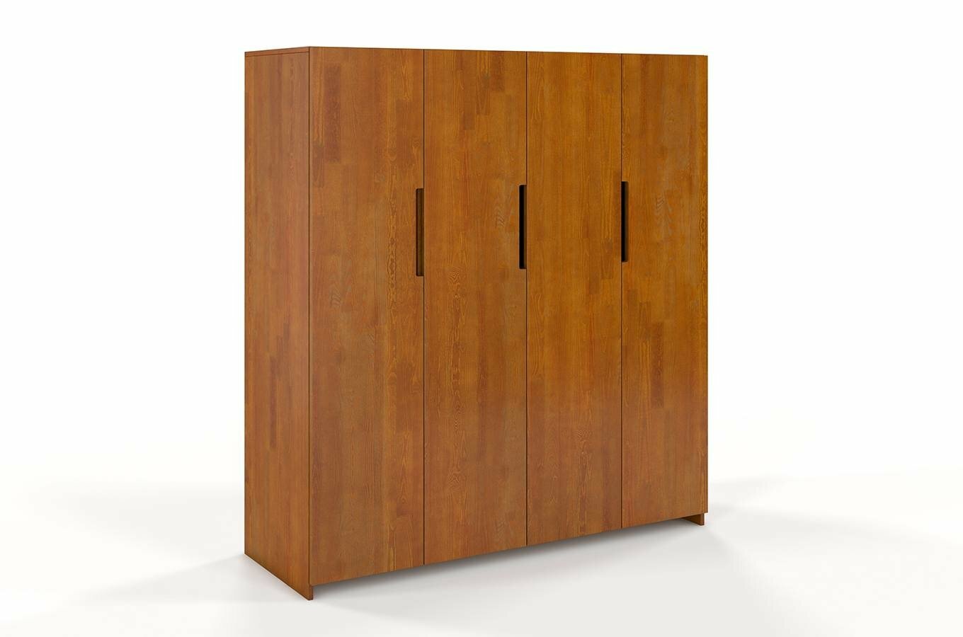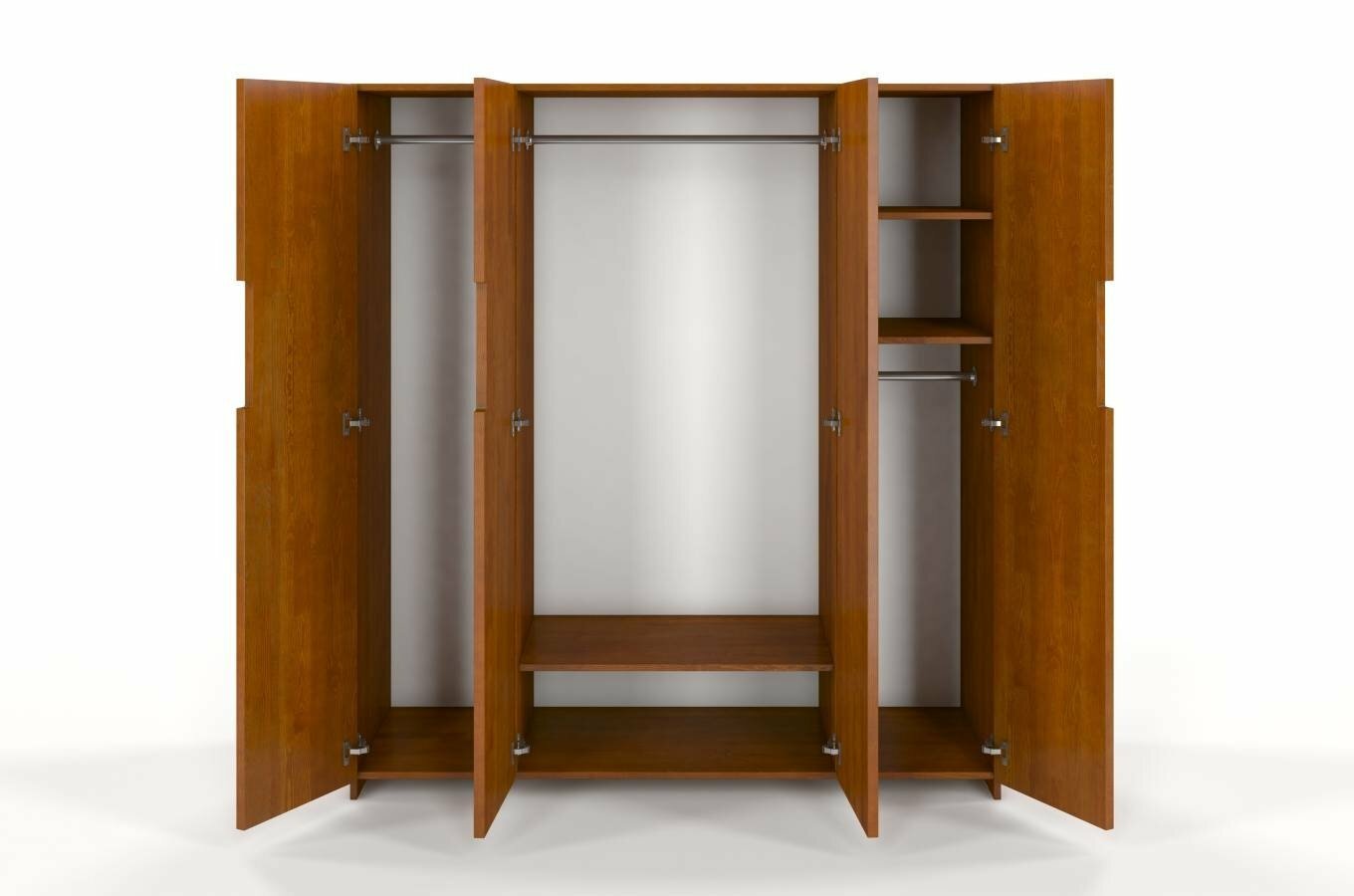 Šatní skříň Naturlig Larsos 4D (borovice) o výšce 180 cm a hloubce 60 cm je ideální pro milovníky severského stylu. Tato čtyřdveřová skříň z borovicového dřeva bude vynikajícím doplňkem pro předsíň, ale také pro ložnici. Vnitřní dělení skříně je vhodné pro kabáty, sezónní doplňky a boty. Střední část má šatní tyč a pod ní je police. Na pravé straně jsou dvě poličky a menší šatní tyč, zatímco na levé straně je další šatní tyč na zavěšení dlouhých kabátů nebo šatů. Konstrukce je pevná a stabilní, z borovicového dřeva. Šatní skříň je odolná vůči deformaci způsobené vlhkostí a dřevo je ošetřeno vrstvami ochranného laku chránícího nábytek před poškrábáním a odřením. Rozměry skříně jsou 170 cm na šířku, 180 cm na výšku a 60 cm na hloubku. Při objednávce je požadována záloha ve výši 50% z ceny produktu s DPH předem. Lakování skříně je moderní a vysoce kvalitní s estetickou strukturou dřeva a výbornou odolností vůči poškrábáním a čištění. Lak splňuje normu EN71-3 a má UV filtry, které chrání před přirozeným stárnutím.