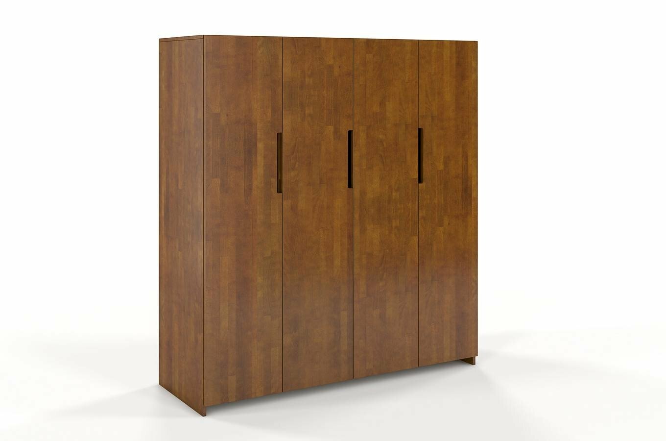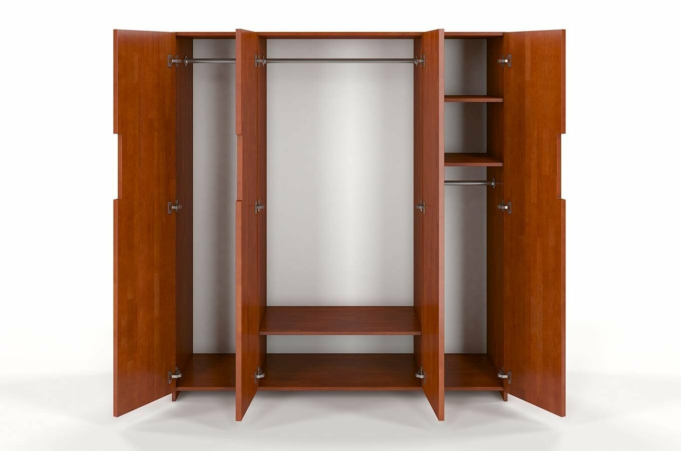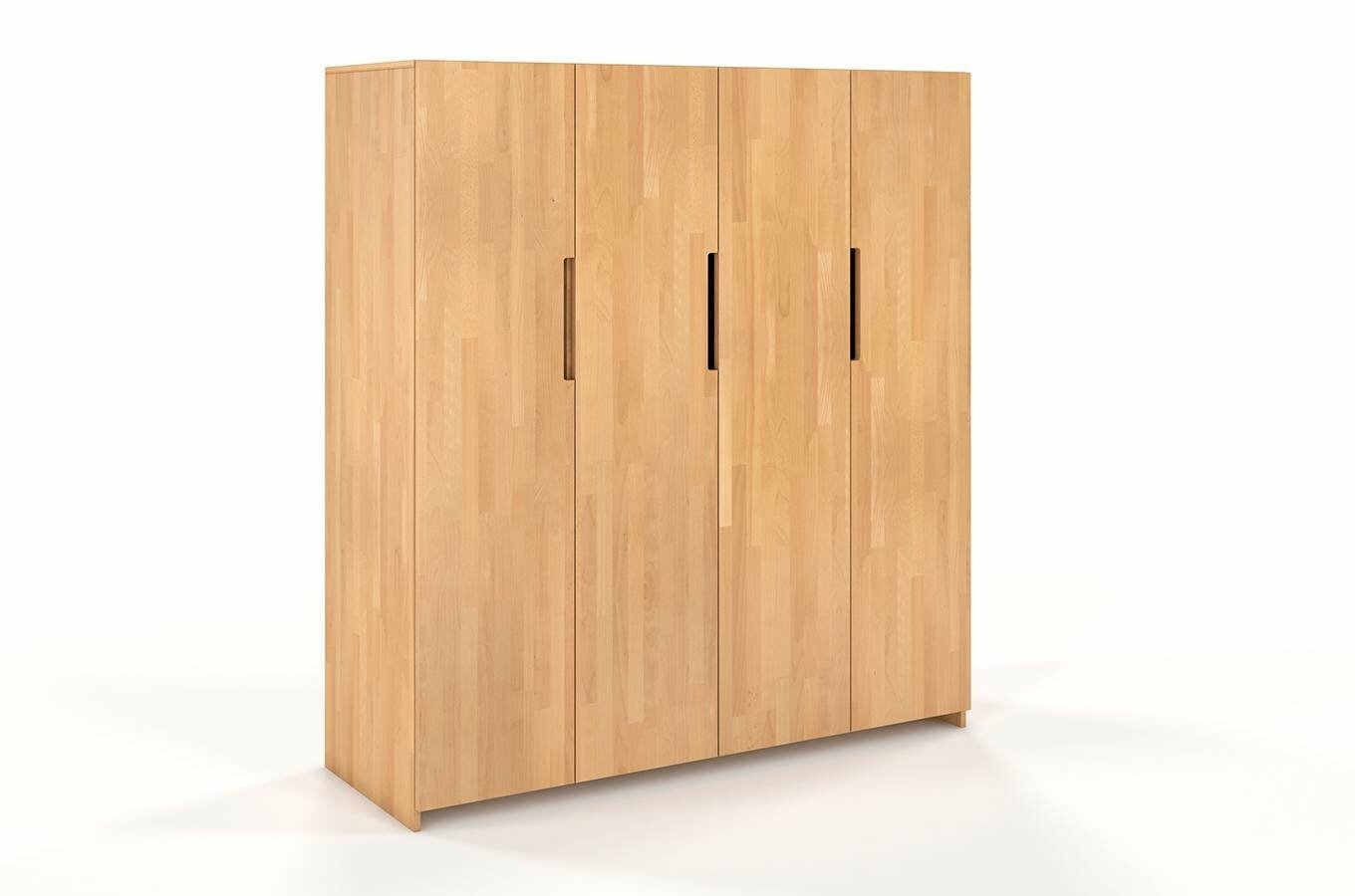 Šatní skříň Naturlig Larsos 4D (buk) o výšce 180 cm a hloubce 60 cm je ideálním doplňkem každé moderní interiéru. Tato elegantní čtyřdveřová skříň z bukového dřeva s vnitřním dělením je vhodná pro uskladnění kabátů, sezónních doplňků a bot. Střed skříně tvoří šatní tyč a police, pravá strana obsahuje dvě poličky a menší šatní tyč, levá strana ukrývá další šatní tyč pro dlouhé kabáty nebo šaty. Šatní skříň je vyrobena z pevného bukového dřeva, které je odolné vůči deformaci způsobené vlhkostí, a je ošetřena vrstvami ochranného laku, který chrání před oděrem a škrábanci. Šatní skříň je široká 170 cm a její moderní vysoce kvalitní lak na bázi vody zdůrazňuje přirozenou strukturu dřeva a zvýrazní také použitou barvu. Při objednání tohoto produktu je požadována záloha ve výši 50% z ceny produktu s DPH předem.