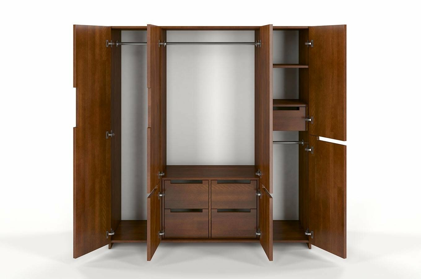 Šatní skříň Naturlig Larsos 4D5S (buk) výška 180 cm hloubka 60 cm Buk Popis: Šatní skříň s vnitřním dělením z bukového dřeva umožňuje přehledné uskladnění oblečení a doplňků. Střední část skříně tvoří šatní tyč na kabáty a dlouhé oděvy, spodní část má 4 zásuvky pro prádlo a doplňky. Pravá část obsahuje 2 police, šuplík a menší šatní tyč. Vlevých dveřích je prostor pro větší předměty. Šatní skříň má pevnou a stabilní konstrukci z bukového dřeva s ochranným lakem proti deformaci a poškození. Rozměry jsou 170 x 180 x 60 cm. Při koupi je požadována záloha ve výši 50% z ceny produktu s DPH. Produkt je lakován moderním vysoce kvalitním lakem na bázi vody s UV filtry a splňuje normu EN71-3.