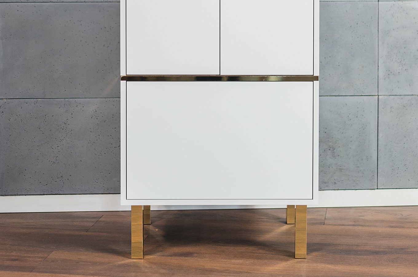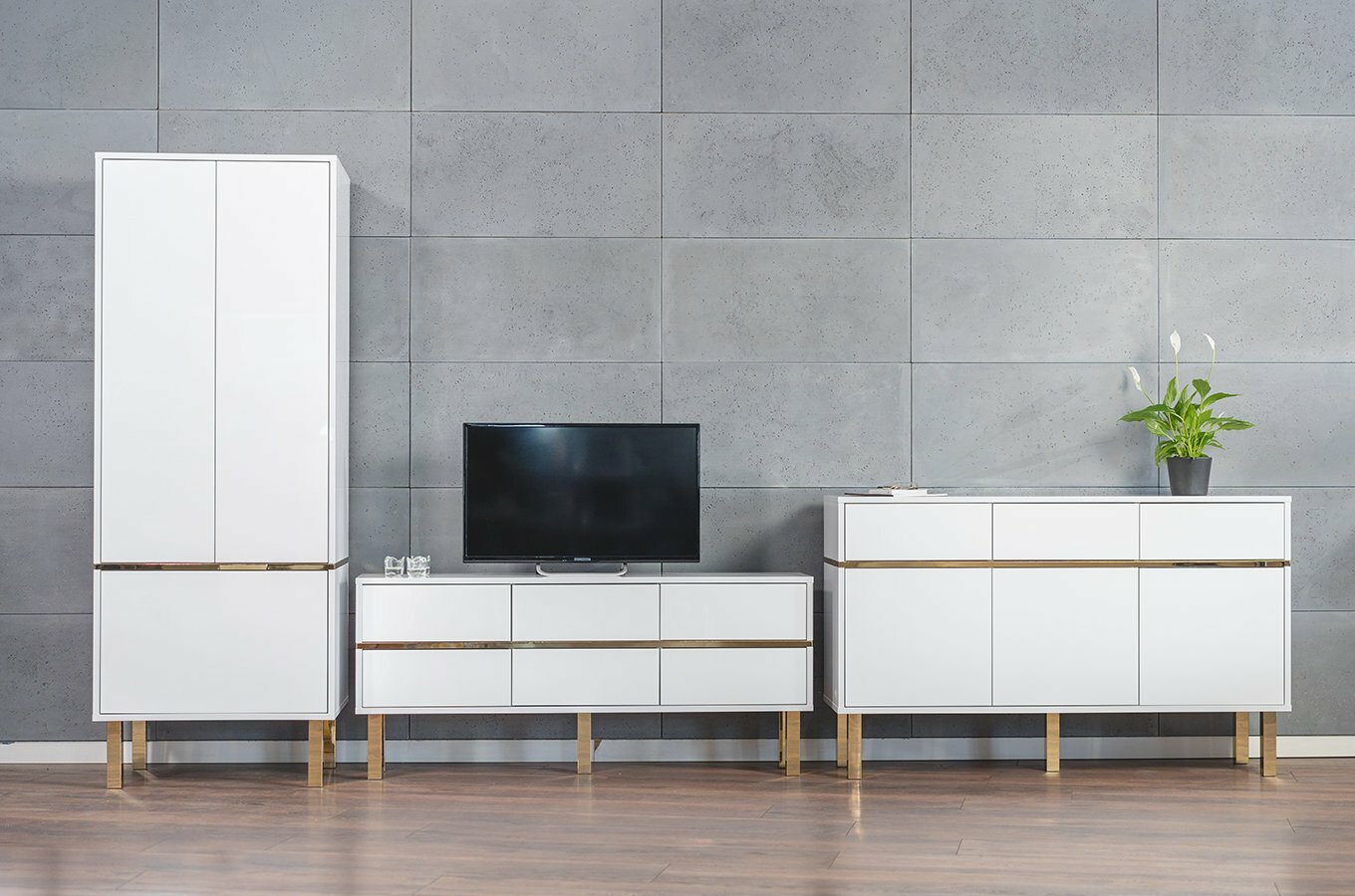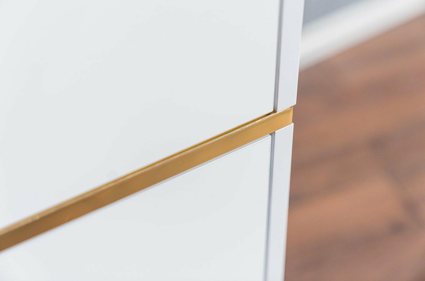 ZobrazitŠatní skříň Naturlig Mynga (vysoký lesk bílý) je vyrobena z kvalitního MDF dřevotřísky o tloušťce 18 mm. S výškou 185 cm a hloubkou 54.5 cm, je ideální volbou pro uskladnění vašich oděvů a doplňků. Skříň je vybavena nožičkami z hliníku ve zlaté barvě, které mají výšku 20 cm a tloušťku 4 cm. Uvnitř skříně najdete dostatek místa pro zavěšení oblečení a na policích. Výška vnitřních zásuvek je 42 cm a výška vnitřního prostoru skříně je 117,6 cm. Skříň má kovové kování s 3D regulací, které umožňuje úplnou korekci mezer mezi frontami. Ozdobný pásek z hliníku se zlatou barvou přidává skříni eleganci. Otevírání zásuvek je řešeno push to open systémem. Skříň Naturlig Mynga (vysoký lesk bílý) je dokonalým doplňkem každé moderní ložnice.
