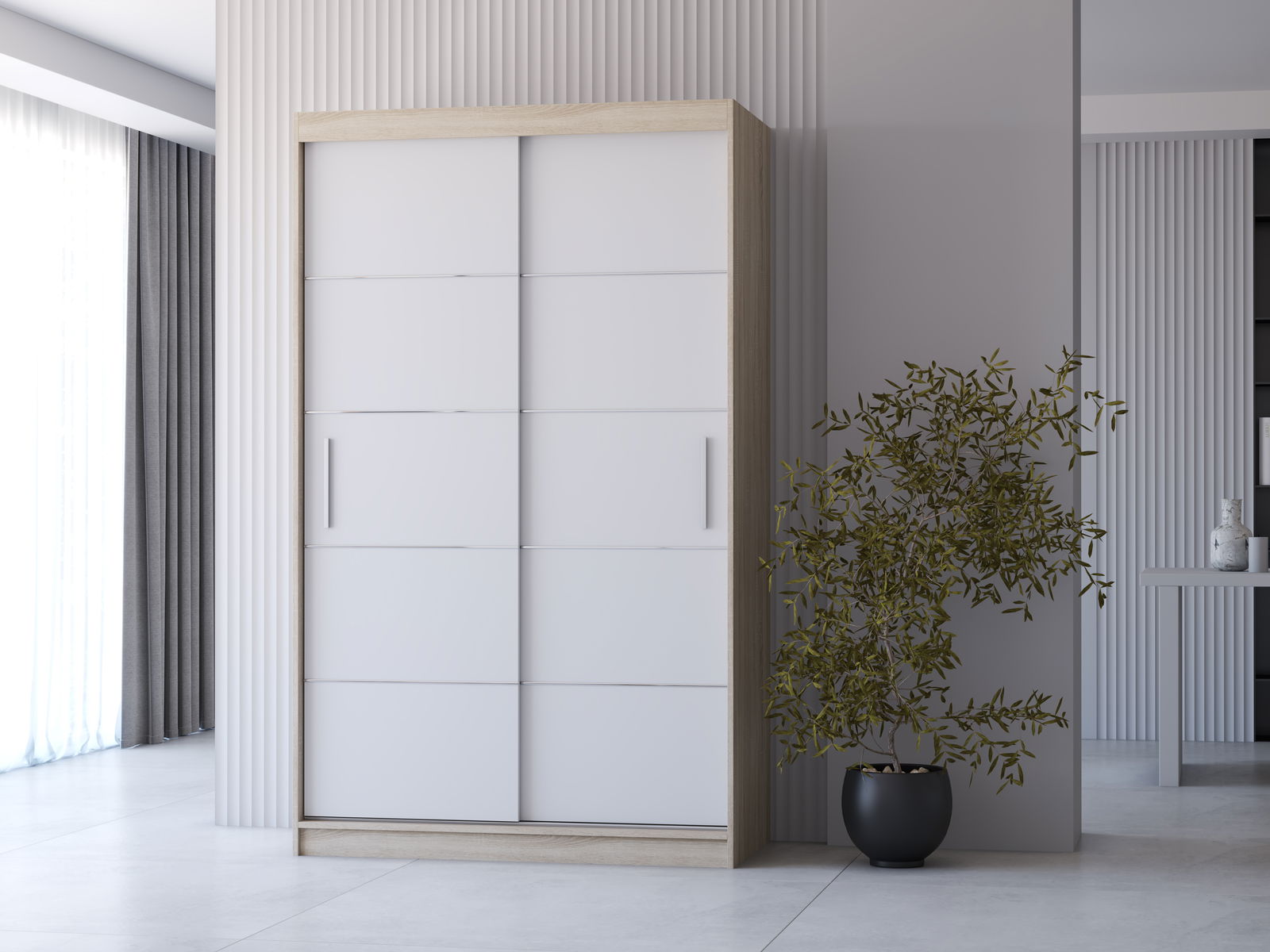 - Šatní skříň Nestor 06 (dub sonoma + bílá)