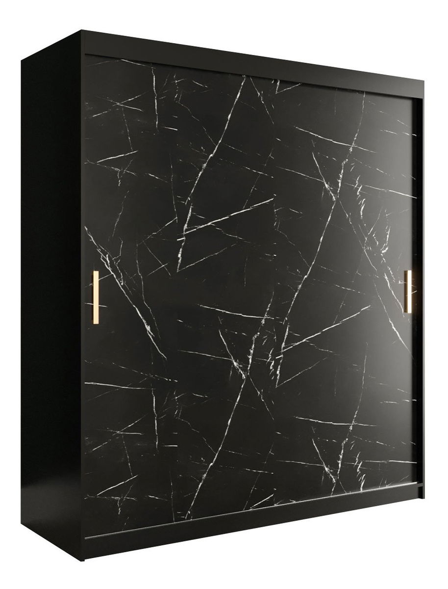 Šatní skříň Nona T (černá + bílý mramor)