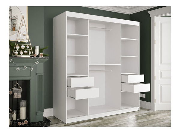 ZobrazitPosuvná skříň je ideální volbou pro ty, kdo hledají pohodlí a styl. Elegantní šatní skříň může být dokonalým doplňkem do ložnice nebo předsíně, který jim dodá charakter a styl. Dekorativní styl šatní skříně Nonnus 180 T je ovlivněn zejména přední částí, která imituje texturu mramoru. Celek doplňují zlaté úchytky. Kromě estetických hodnot nabízí posuvná skříň praktický interiér, do kterého se jistě vejde množství oblečení či bytových komponentů. Za posuvnými dveřmi jsou četné police a dvě tyče na ramínka. Kromě toho si jako doplňkovou možnost můžete vybrat praktické zásuvky, které se skvěle hodí pro uložení spodního prádla nebo drobných doplňků. Rozměry: šířka: 180 cm, výška: 200 cm, hloubka: 62 cm Provedení: 16 mm silná laminovaná deska, hrany zakončené odolnou a odolnou PVC dýhou, posuvné dveře na vodítkách firmy "BIMAK", systém "MINI", kovové ruky (4ks) jako doplňková možnost za příplatek - v barvě korpusu Záruka: 24 měsíců