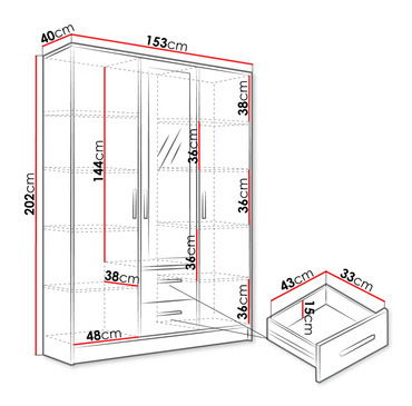 ZobrazitFunkčním kusem nábytku, který dokáže uspořádat vaše oblečení, je šatní skříň Noralan 153. Její krásný vzhled a jemná barva skvěle zapadne do každého aranžmá. Úspěšně ji můžete umístit do ložnice nebo předsíně. Vybavena zrcadlem na přední straně, bude perfektní podívat se v ní na sebe předtím, než vyjdete ven. Za pozornost stojí také interiér šatníku. Četné police a praktická tyč na oblečení se postará o to, aby si každá věc našla své místo. Kromě toho má tento model také dvě zásuvky, které jsou ideální jako základ pro spodní prádlo a drobné doplňky. Celek doplňují šikovné úchyty, které jemně splývají s korpusem nábytku.
