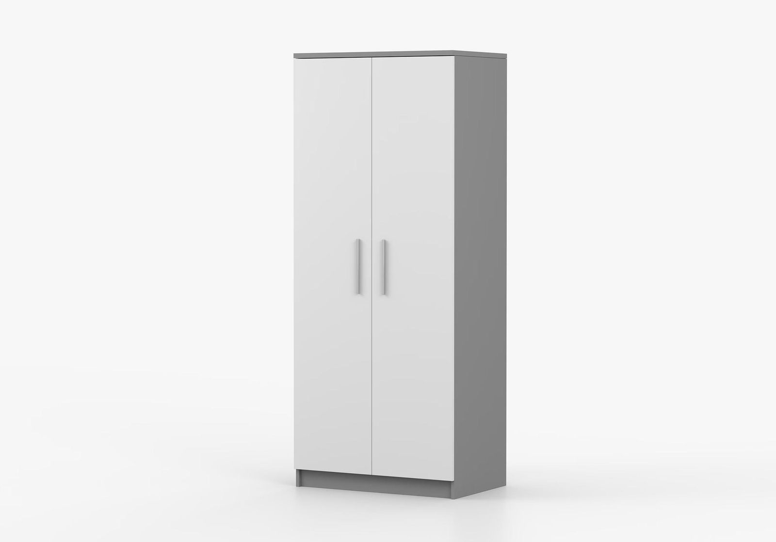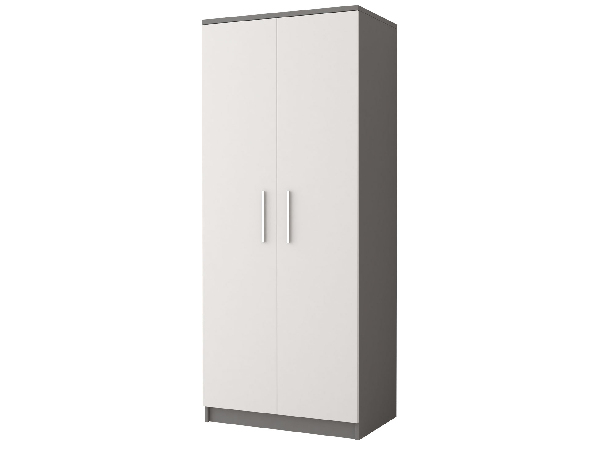 Minimalistická šatní skříň je vyrobena z 16 mm silné dřevotřísky, použité pro vnější i vnitřní části, a je doplněna o 0,5 mm ABS hranami pro zvýšenou odolnost a lepší vzhled. Skříň je vybavena stříbrnými, plastovými úchyty, které jsou praktické a zároveň podporují její minimalistický design. Bez nožiček, skříň poskytuje stabilní oporu přímo na podlaze. Se dvěma dveřmi nabízí dostatečný úložný prostor. Uvnitř skříně se nacházejí čtyři poličky a věšáková tyč, které umožňují efektivní uspořádání oblečení a jiných předmětů. Tento kus nábytku je ideální pro ty, kdo hledají jednoduchost a funkčnost v jejich domovech.