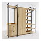 tloušťka: 18 mm, elektrostatický práškový lakovaný kovový rám šířka: 200 cm, výška: 180 cm, hloubka: 40 cm, velikost zásuvky: šířka: 56 cm, výška: 28 cm, hloubka: 40 cm, výška vnitřní police: 38 cm, velikost boční police: šířka: 56 cm, výška: 25 cm, výška nohy: 8 cm