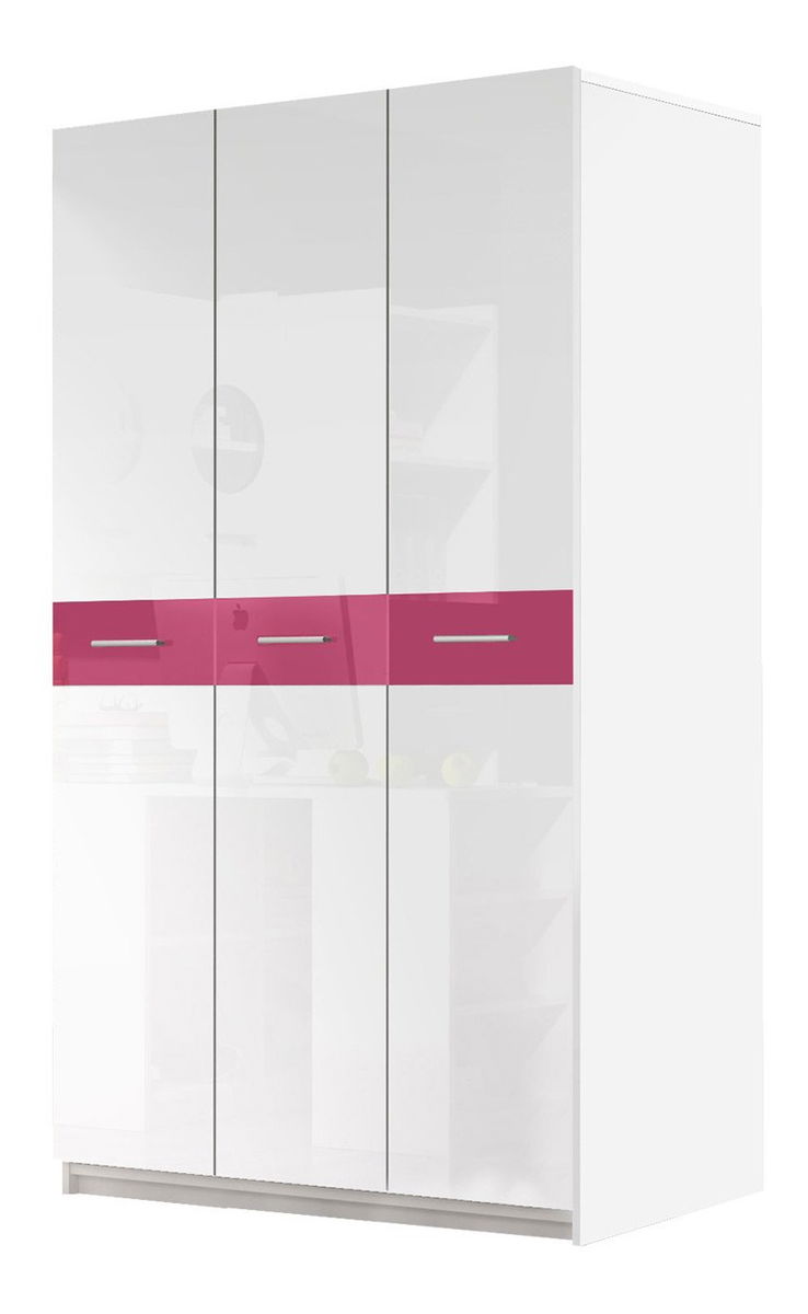 Šatní skříň Paralia PD6 (bílá + bílá lesklá + růžová lesklá)