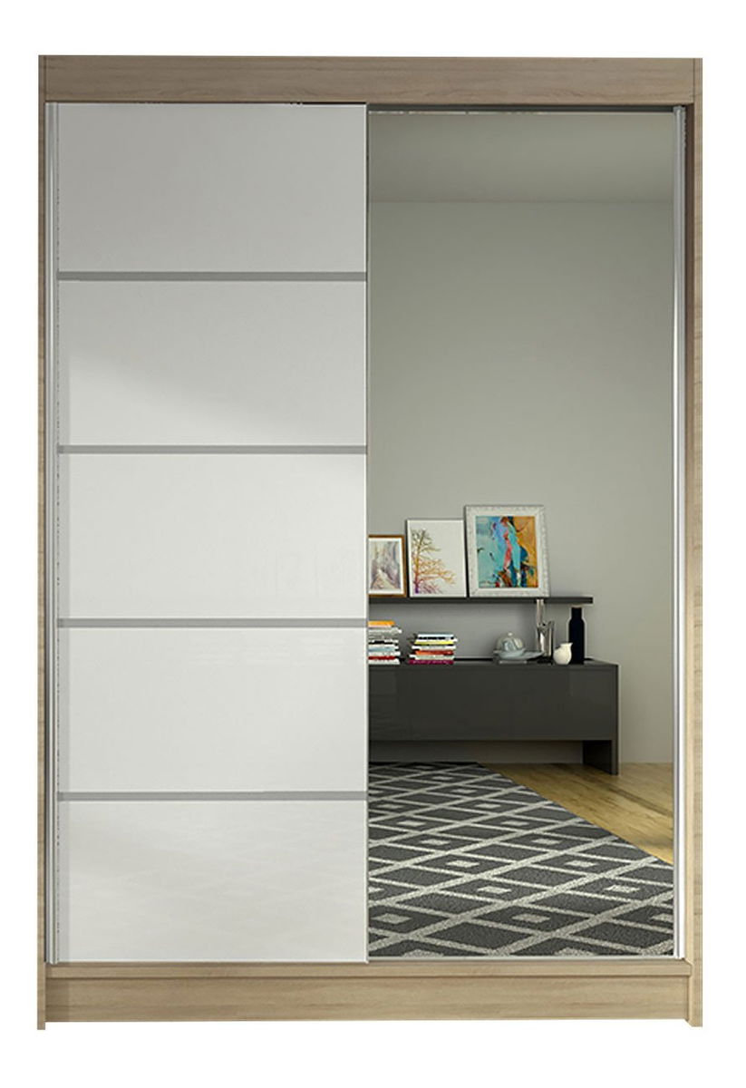 ZobrazitPosuvná skříň je ideální volbou pro ty, kdo hledají pohodlí a styl. Potřebujete šatní skříň, která vám pomůže uspořádat vaše oblečení nebo bytové doplňky? Pokud ano, máme pro vás zajímavou nabídku - šatní posuvnou skříň Parys III. Interiér skříně je vybaven prostornými policemi a tyčí pro ramínka. Celková šířka šatníku je 120 cm a jeho výška je 200 cm. Šatník má navíc systém posuvných dveří, který funguje hladce a plynule. Důvodem jsou hliníkové vodící lišty a držadla ve formě hliníkových pásků. Kromě toho má skříň dekorativní příď a velké zrcadlo, které vám umožní vidět se. A chcete-li zdůraznit přítomnost šatníku v místnosti, můžete si vybrat osvětlení LED, které nabízí 15 barev. Rozměry: šířka: 120 cm, výška: 200 cm, hloubka: 58 cm Provedení: laminovaná deska o tloušťce 16 mm, hrany zakončené ABS dýhou, systém posuvných dveří, zrcadlo na přední straně, rukojeť ve formě hliníkového pásu, podél dveří hliníkové držáky prostornými policemi, RGB LED osvětlení jako doplňková možnost za příplatek (15 variabilních barev + dálkové ovládání) Záruka: 24 měsíců